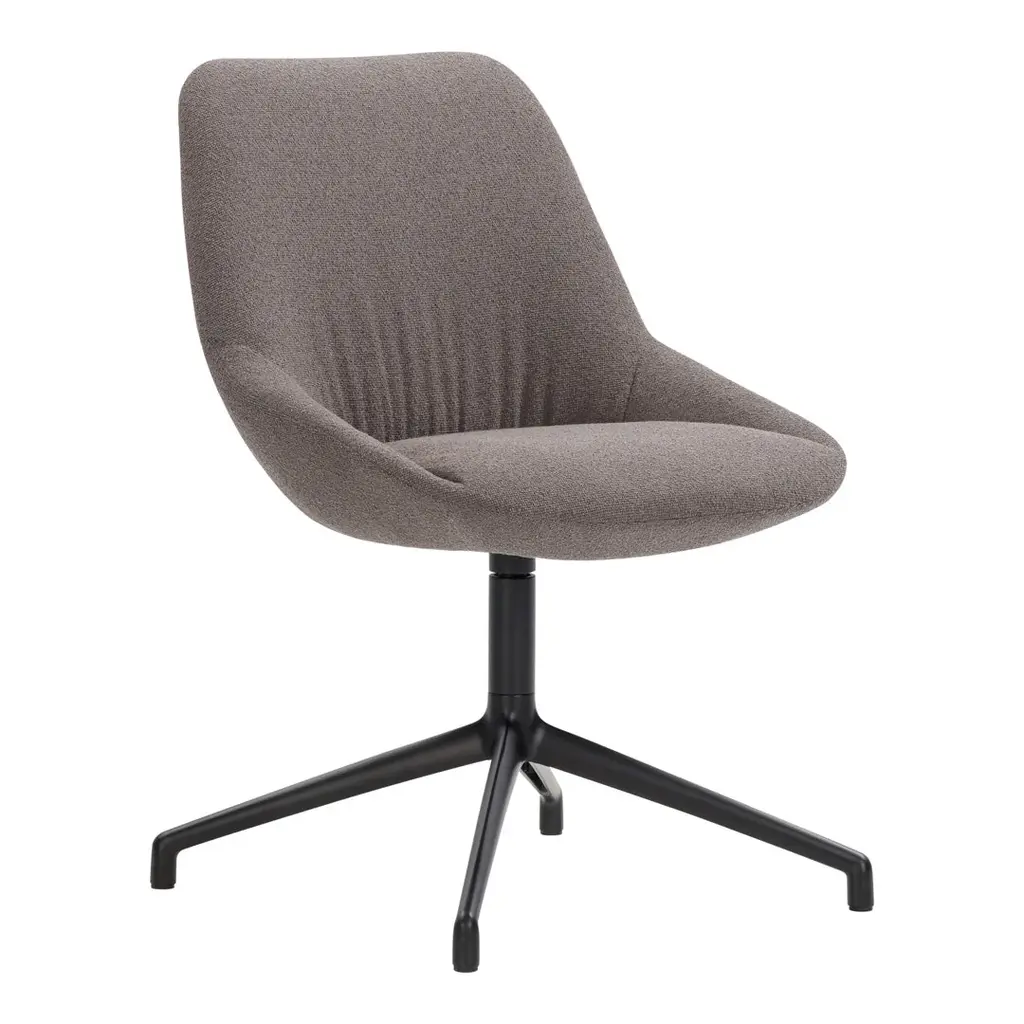 The Sinum Dining Chair with Swivel Base introduces fluid movement to sophisticated dining spaces. Taking its name from the Latin word for "pocket," this refined chair combines compact proportions with generous comfort through its distinctive curved pocket of padding that embraces the sitter. What distinguishes this version is its elegant swivel base in black powder-coated aluminum and steel, which adds a dynamic quality to the seating experience. The optional return mechanism ensures chairs remain properly positioned when not in usean especially valuable feature in hospitality environments and conference settings where presentation matters. Hamburg-based designers Birgit Hoffmann and Christoph Kahleyss have created a versatile piece that transcends traditional dining functionality. The chair's slightly tilted backrest and carefully engineered internal structurefeaturing high-resilient, variable-density polyurethane foamprovide exceptional support for both active and relaxed seating positions during extended gatherings. For spaces with different requirements, the Sinum collection offers additional options, including the armchair version of this swivel base design or models with casters for maximum mobility, while maintaining the same refined aesthetic and comfort characteristics across the entire range.