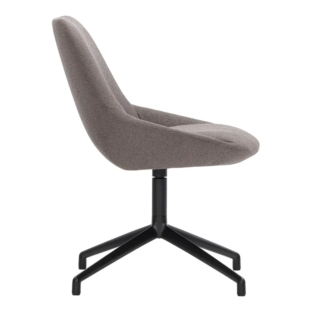 The Sinum Dining Chair with Swivel Base introduces fluid movement to sophisticated dining spaces. Taking its name from the Latin word for "pocket," this refined chair combines compact proportions with generous comfort through its distinctive curved pocket of padding that embraces the sitter. What distinguishes this version is its elegant swivel base in black powder-coated aluminum and steel, which adds a dynamic quality to the seating experience. The optional return mechanism ensures chairs remain properly positioned when not in usean especially valuable feature in hospitality environments and conference settings where presentation matters. Hamburg-based designers Birgit Hoffmann and Christoph Kahleyss have created a versatile piece that transcends traditional dining functionality. The chair's slightly tilted backrest and carefully engineered internal structurefeaturing high-resilient, variable-density polyurethane foamprovide exceptional support for both active and relaxed seating positions during extended gatherings. For spaces with different requirements, the Sinum collection offers additional options, including the armchair version of this swivel base design or models with casters for maximum mobility, while maintaining the same refined aesthetic and comfort characteristics across the entire range.