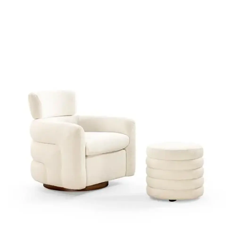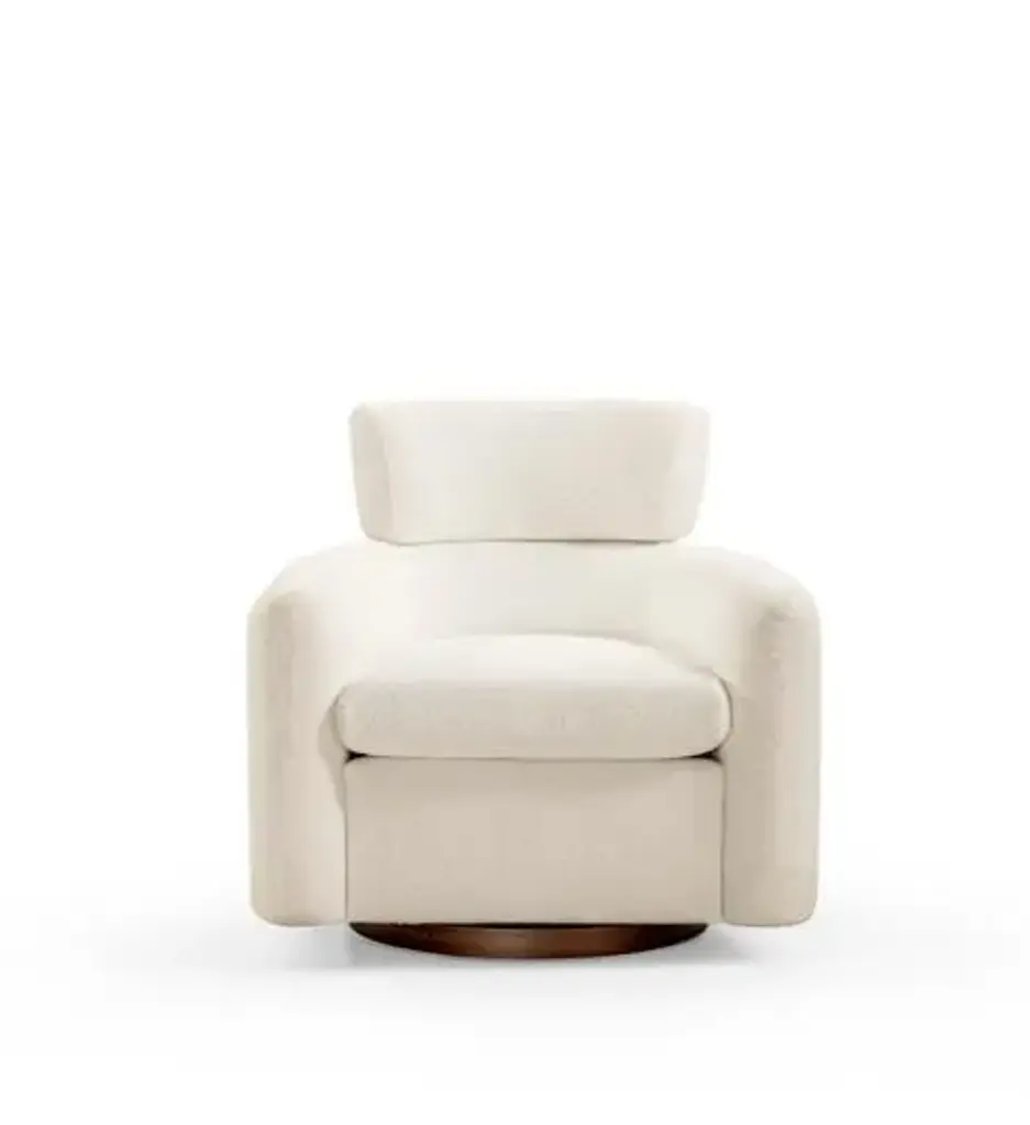 Covered in our cozy Copenhagen fabric, our Skye swivel chair has a natural walnut base. This plush, rounded chair pairs perfectly with our Willow ottoman. If you're looking for a playful piece that still looks sophisticated, our Skye chair is the perfect solution. This lounge chair is ideal for your luxury living space.