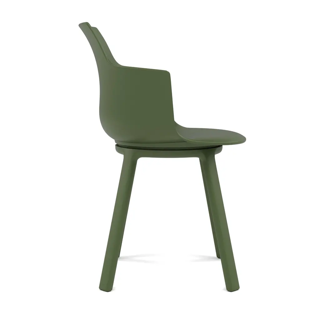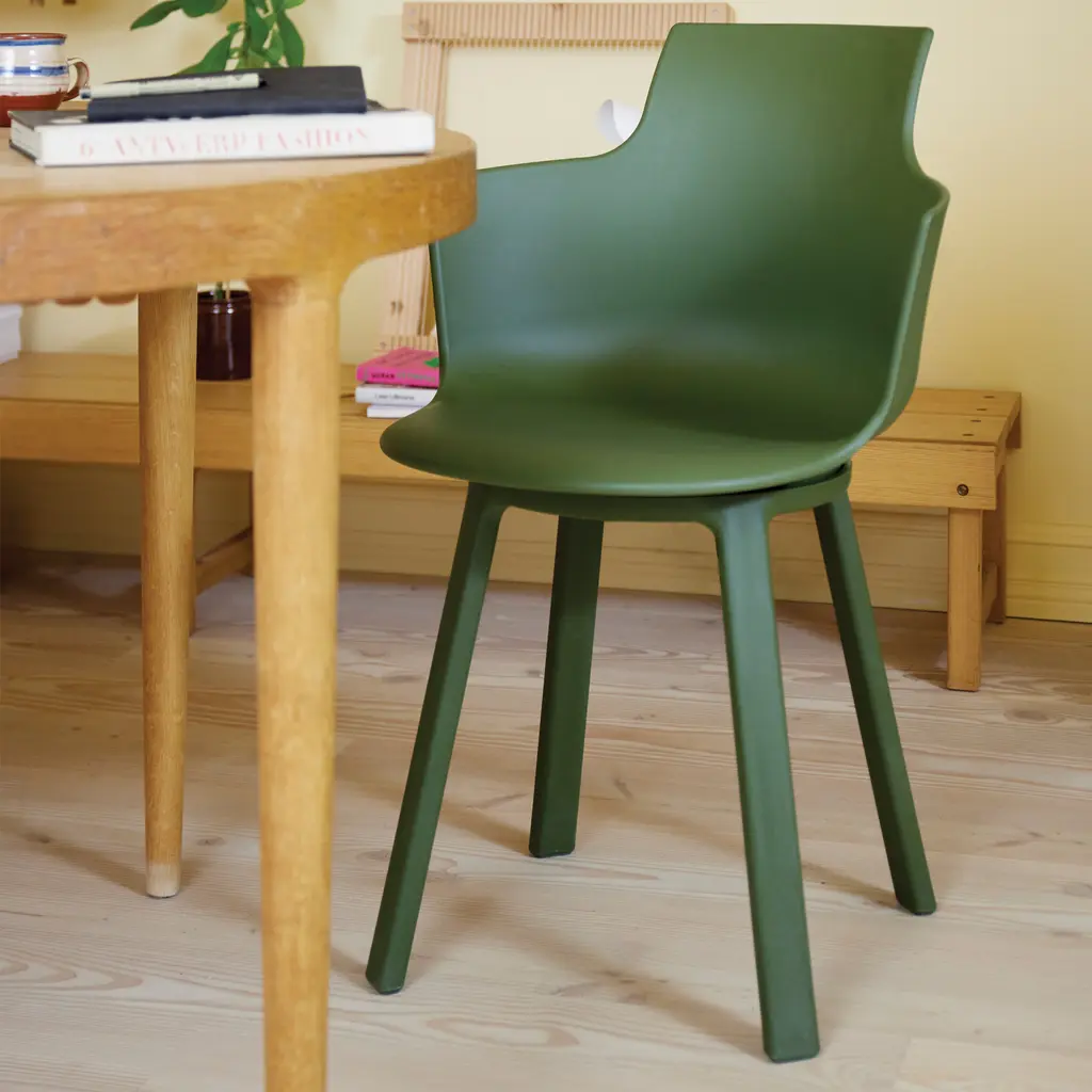 Discover the joy of complete freedom of movement at the dining table with the Varier Social Chair Turn. Designed by architecture firm Snøhetta, this sculptural chair has a swivel base that lets you turn to wherever your attention is needed, whether you’re sharing a good meal and conversation with friends, helping kids with homework, or working from home. Social Chair Turn is ingeniously crafted with a fully molded base and shell made from up to 75% recycled plastic. Glass fiber reinforces the structure while the hollow core minimizes material waste. Incredibly sturdy and durable, this molded shell chair is also beautifully tactile thanks to a velvet-like surface. Available in different colors, the Varier Social Chair Turn complements any space.