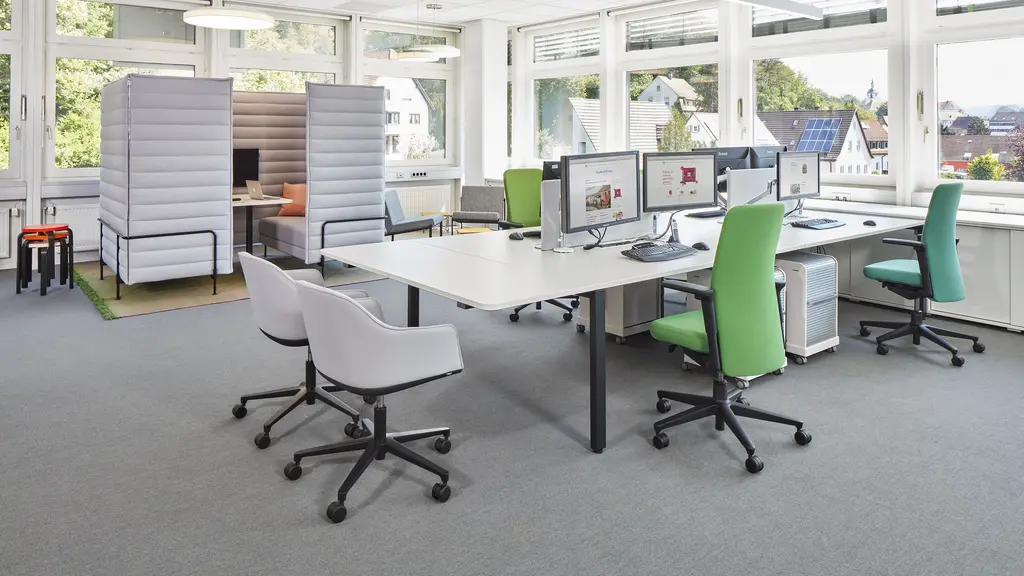 Designed by Ronan and Erwan Bouroullec, the Softshell Chair mounted on a height-adjustable five-star swivel base with castors is ideal for studio offices. Its contours and quality materials give it an inviting appeal, while the soft upholstery guarantees superb comfort.