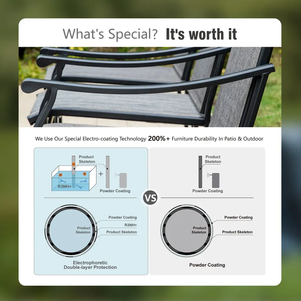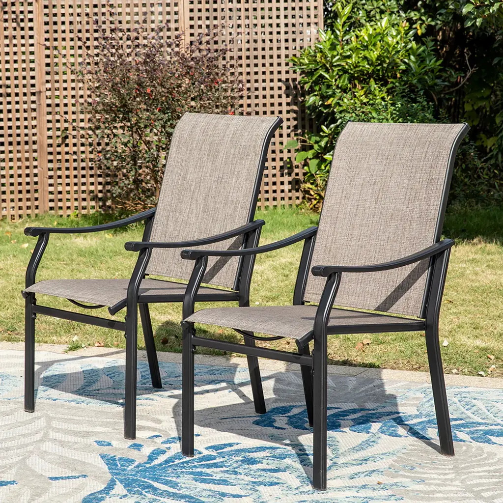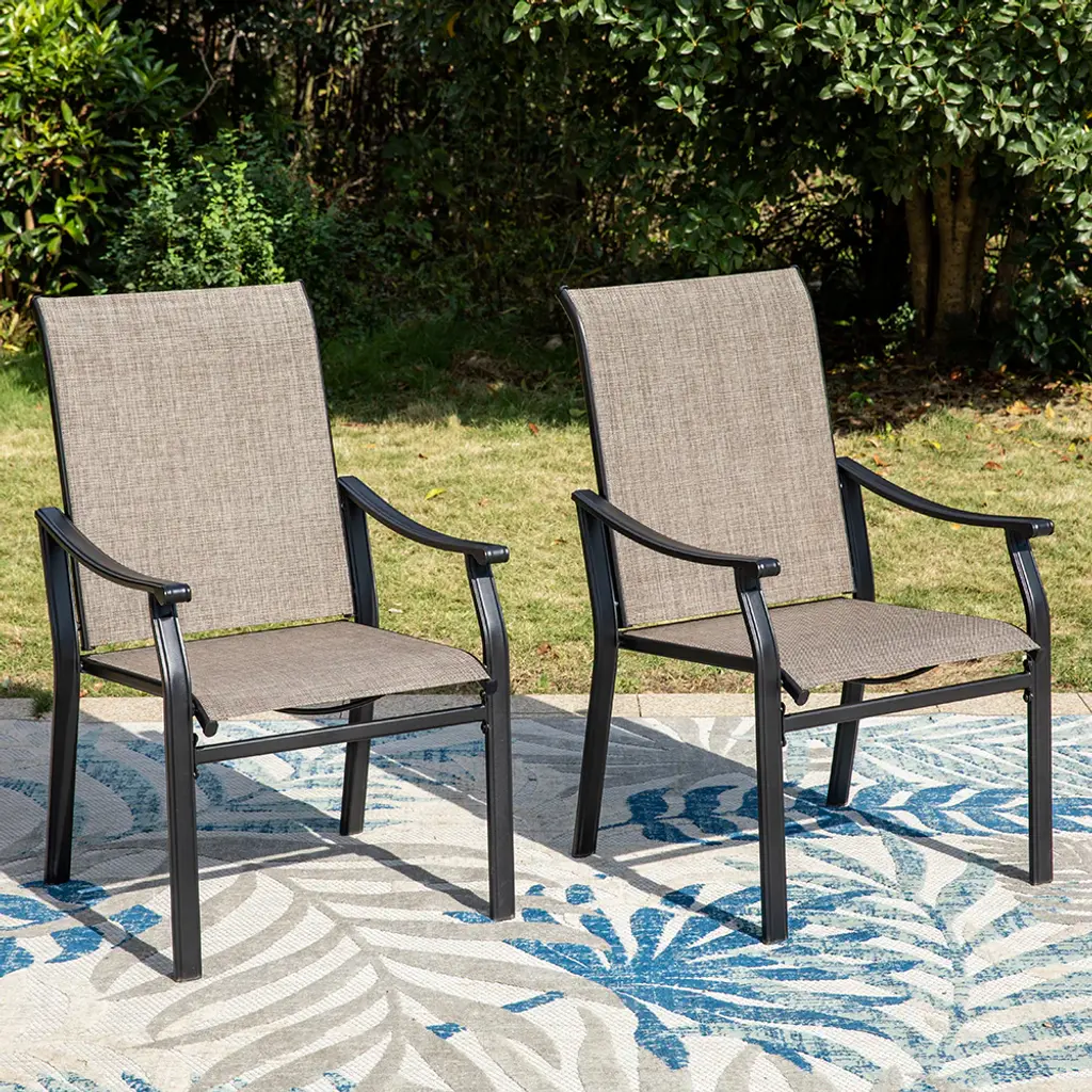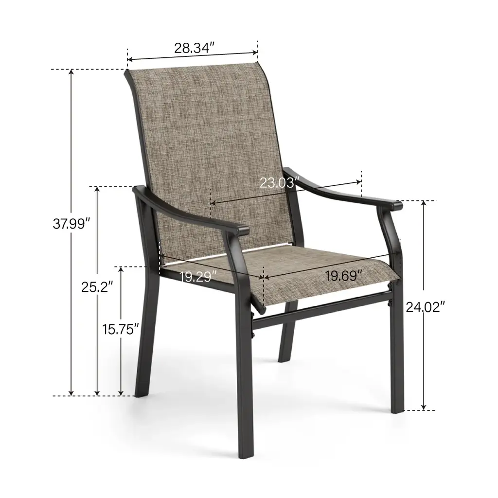 Imagine a tranquil evening on your patio as the sun sets. The ambient lighting and gentle breeze create the perfect atmosphere for a relaxing outdoor meal. You and your guests gather around a stylish dining table adorned with ergonomic sling patio dining chairs. Ergonomic sling patio dining chairs are crafted with comfortable, breathable sling fabric that contours to your body, providing a supportive and comfortable seating experience. Both fixed and swivel chairs are available.