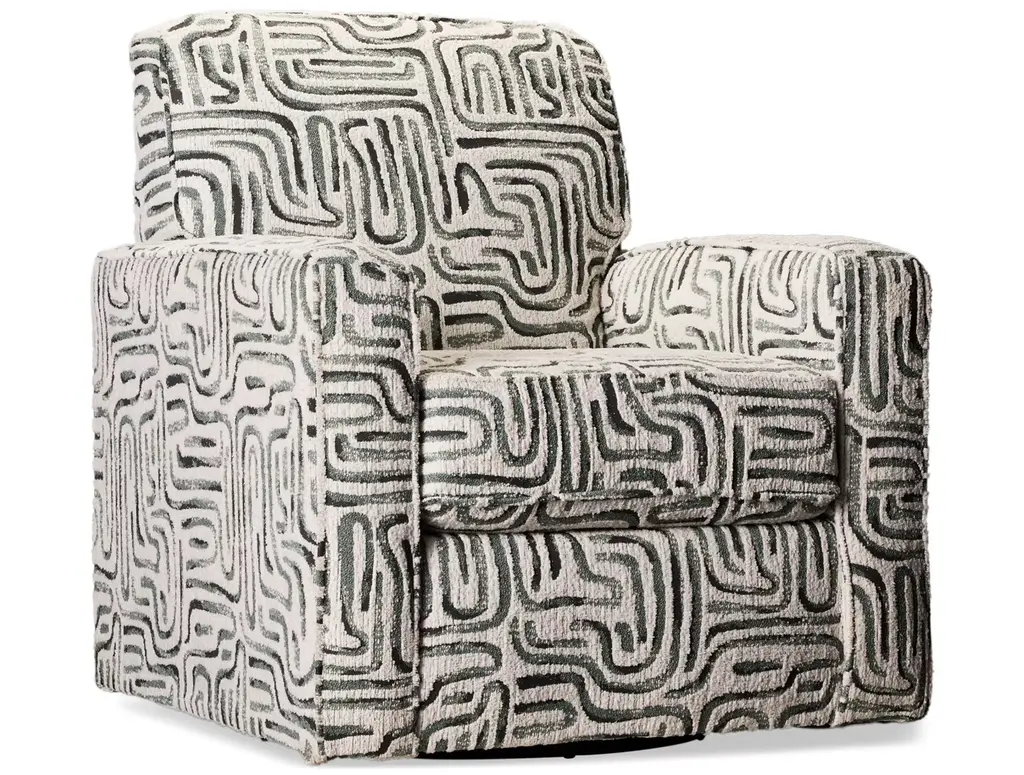 Give your living space a modern makeover with the Peak Living South Main Swivel Chair. Unwind comfortably on its soft upholstery with plush back and seat cushions. This contemporary swivel chair features a square silhouette with track armrests and a swivel base.