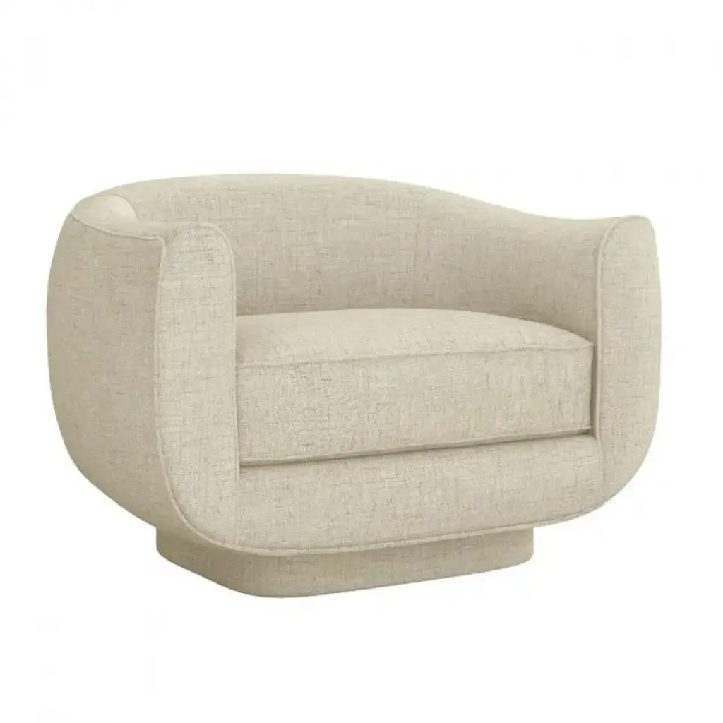 Luxuriant and enveloping, the Spectrum Swivel Chair makes a bold statement. All hardwood frame with interlocking construction. Advanced comfort spring suspension. Loose seat cushion and back with premium polyurethane foam and 100% polyester fiber.