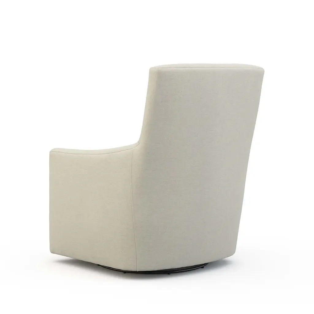 A high back pairs with a petite yet blocky frame to create the Spencer Swivel Chair, a transitional spin on a classic silhouette. The swivel base makes this chair ideal for entertaining spaces, ensuring that no one is excluded from any conversation. Ships In 8-10 Weeks Tight back One loose seat cushion As Shown Fabric: Dundee Natural If you choose to purchase COM, once you have placed your order a customer service rep will contact you regarding where to send your fabric. Please note that current lead time is 8-10 weeks once your fabric arrives at the factory, and if unused fabric is under 1.5 yards, it cannot be sent back to you.This product can be special ordered in additional fabrics, leathers, and cushion fillings. Click here to email us for for additional information about special ordering.This image is for illustrative purposes only. The colors shown are accurate within the constraints of lighting, photography, and the color accuracy of your screen.