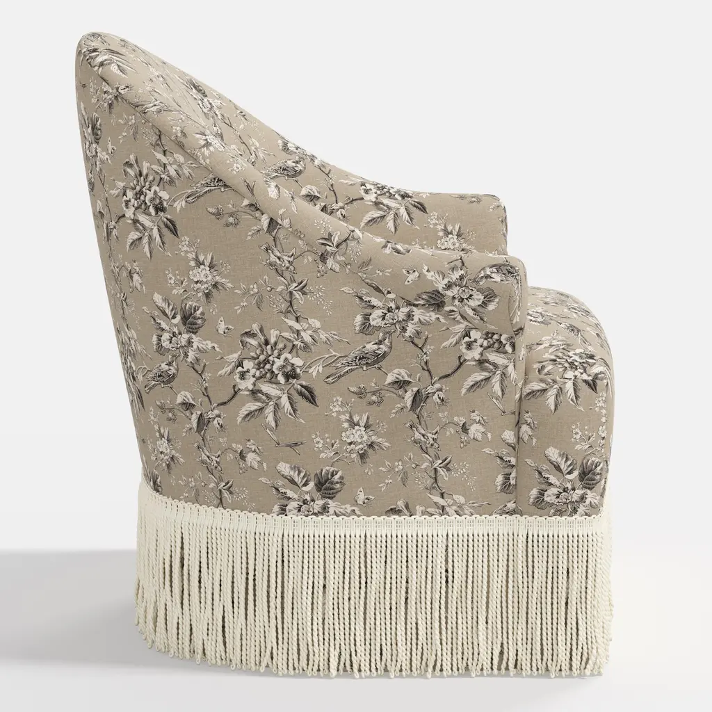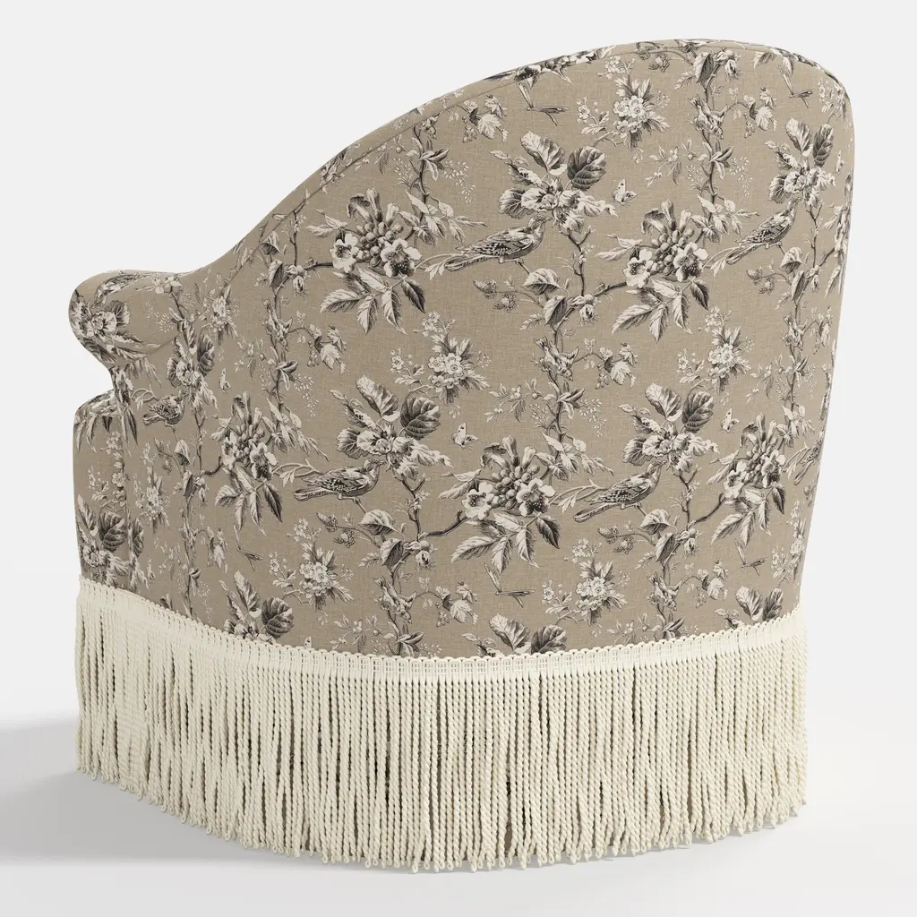 Stoffer Home X Cloth & Company Marie Swivel Chair In Michigan Bird Toile Sand