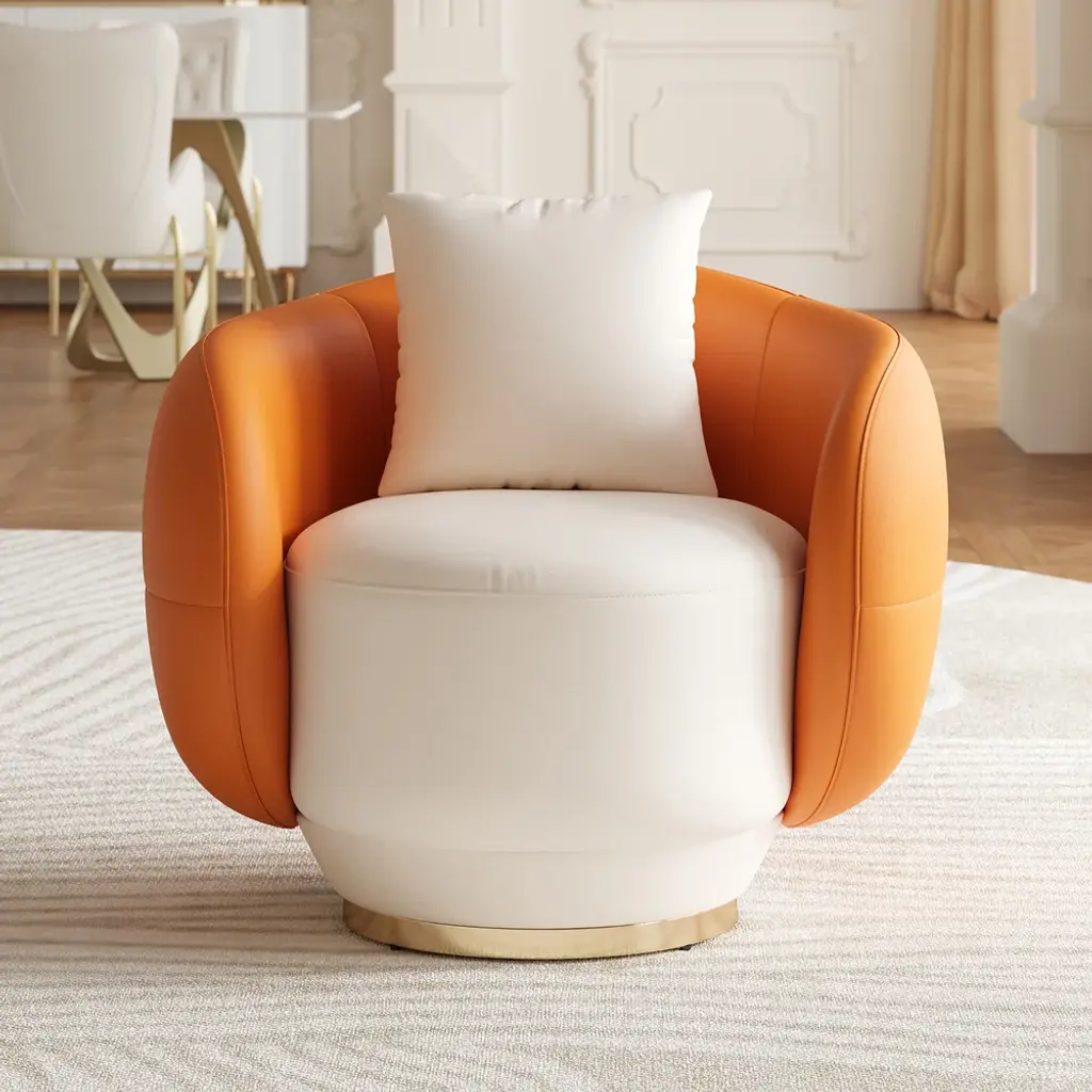 Elevate your space with this modern two-piece swivel chair set. Each chair features bold two-tone faux leather, plush cushioning, and a sleek golden base for effortless style and comfort. Perfect for creating a chic, coordinated lounge vibe.