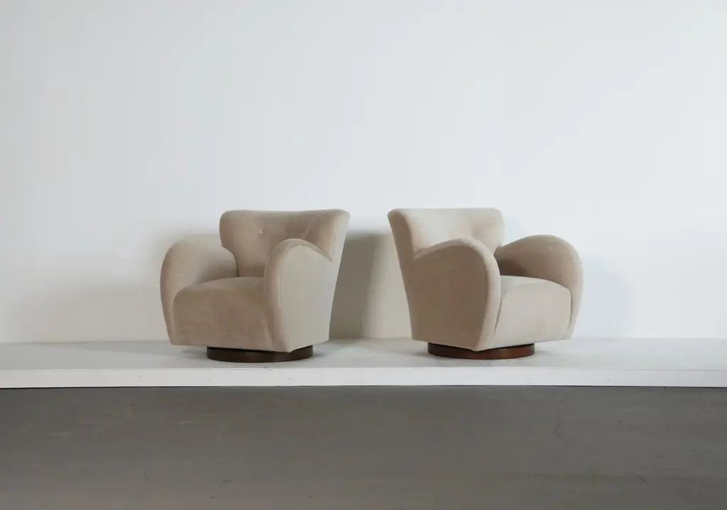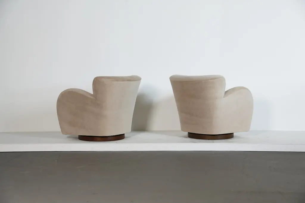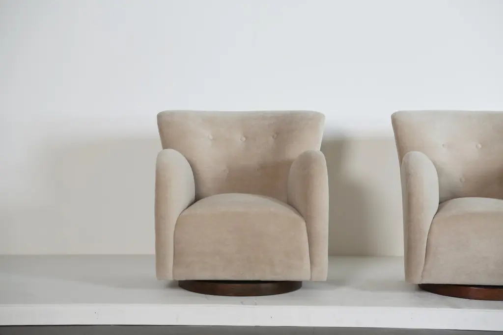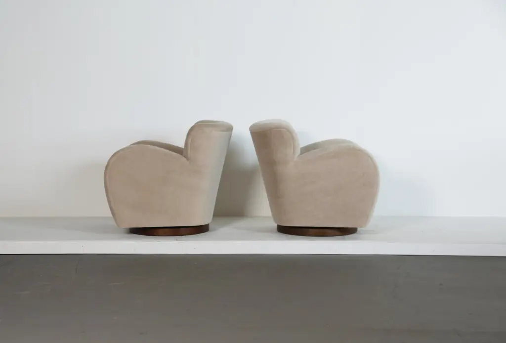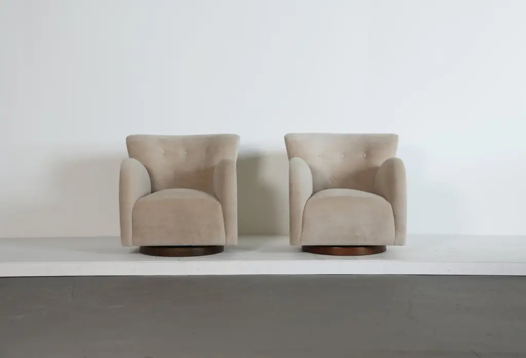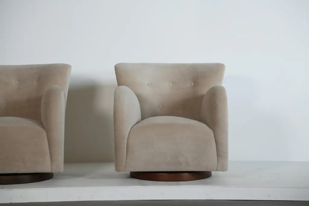 Superb Pair Of Swivel Lounge Chairs, Upholstered In Pure Alpaca