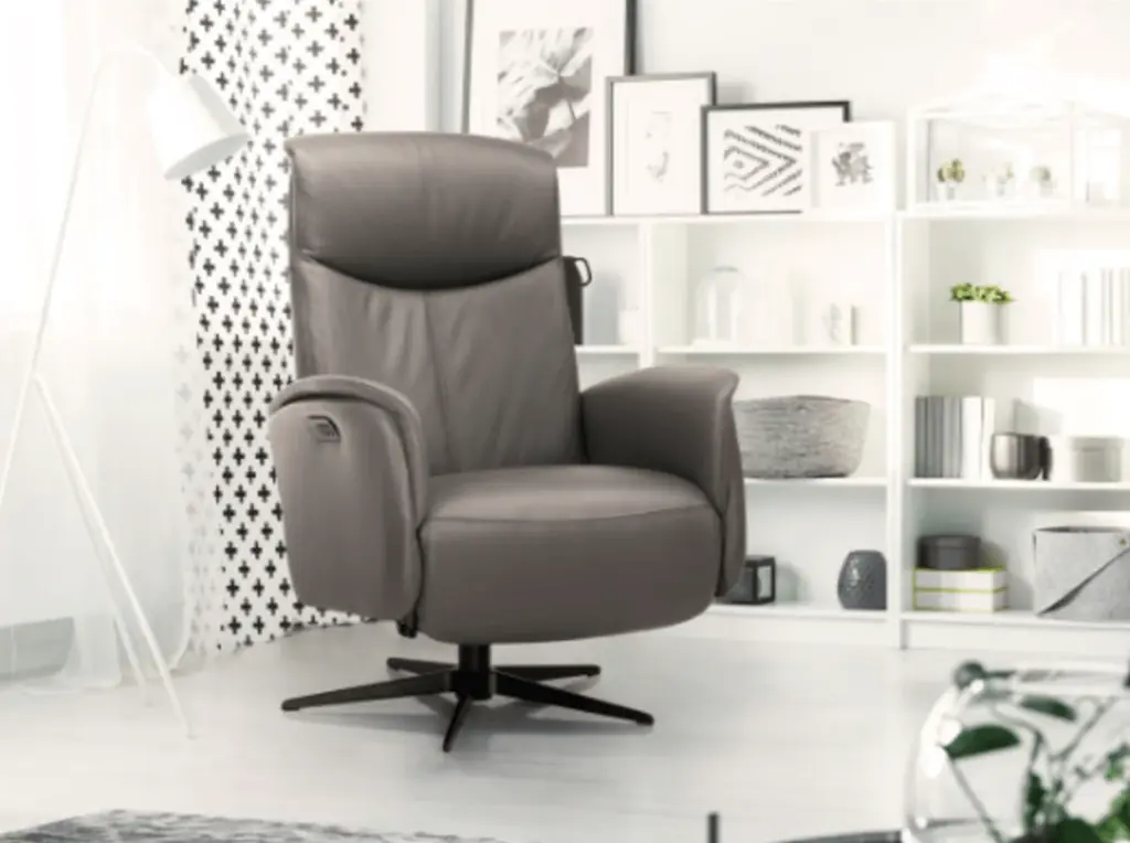 Swivel Recliner Chair with Hidden Leg Rest is an exceptionally comfortable swivel chair with an integrated footrest and adjustable backrest, available in in both manual and power recliner options.