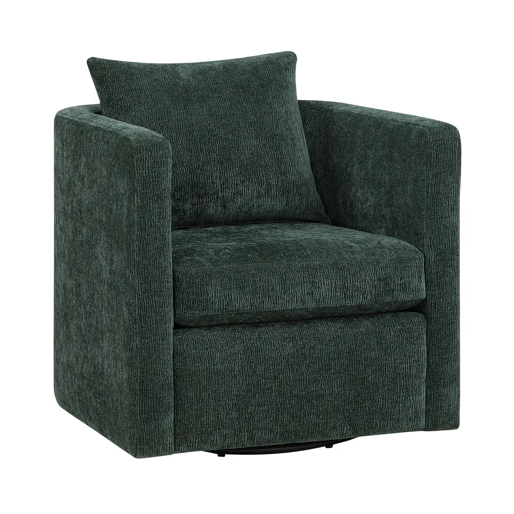 Our Sutton Swivel chair is upholstered in family and pet-friendly ultra-soft performance fabric. A large back pillow and pocket coil seat cushion bring unparalleled comfort. Reversible seat and back cushion enhance durability, while the 360-degree swivel feature adds effortless ease to your conversations.. Upholstered in family and pet friendly ultra soft performance fabric. Stain resistant fabric. Reversible seat and back pillow. 360 degree swivel. Pocket coil seat cushion