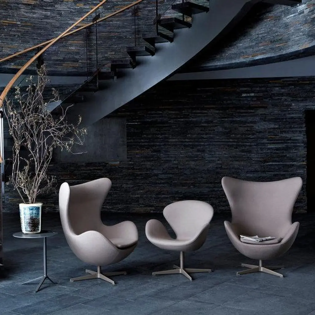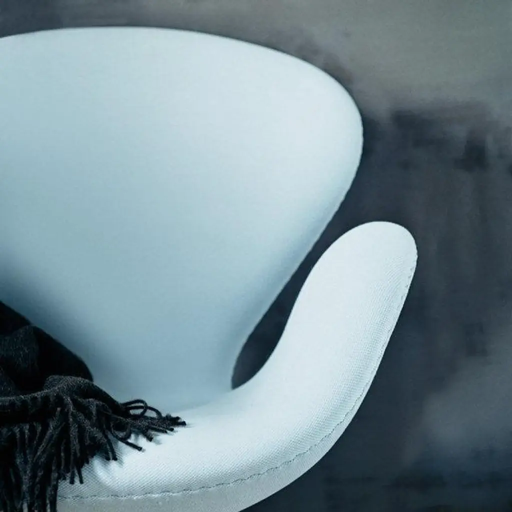 Arne Jacobsen designed The Swan Chair for the lobby and lounge areas at the Royal Hotel in Copenhagen in 1958 and it has been a design icon ever since. The Swan was a technologically innovative chair: No straight lines - only curves. A moulded shell of synthetic material on an aluminium star swivel base, with a layer of cold foam covering the shell upholstered in fabric or leather. Jacobsen built the original in own garage in Klampenborg, and the Swan Chair has been in production at Fritz Hansen ever since. The Swan is ideal for lounge and waiting areas as well as the home. Available in all Fritz Hansen fabrics and leathers. Call for information on other fabrics or to order a custom Swan Chair.