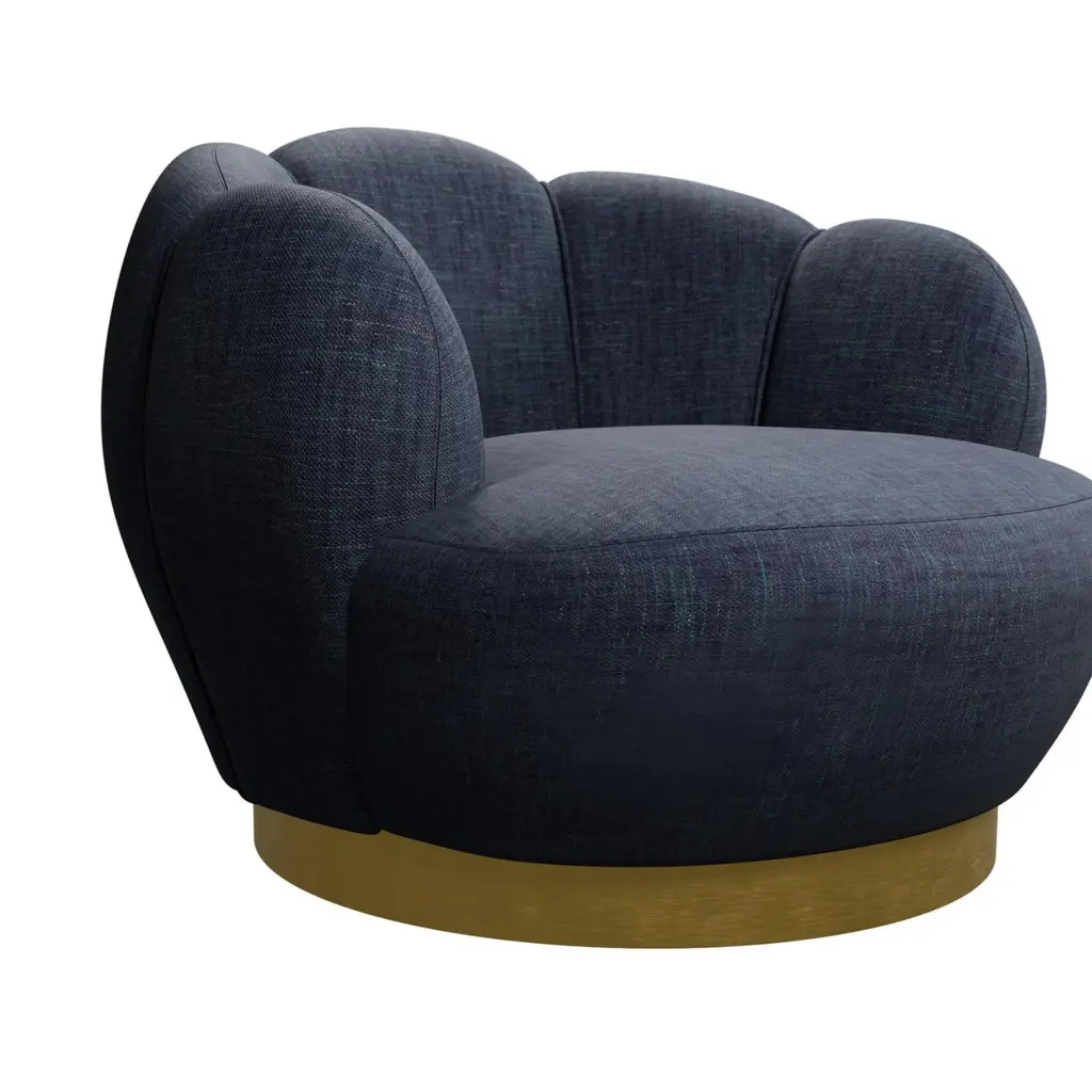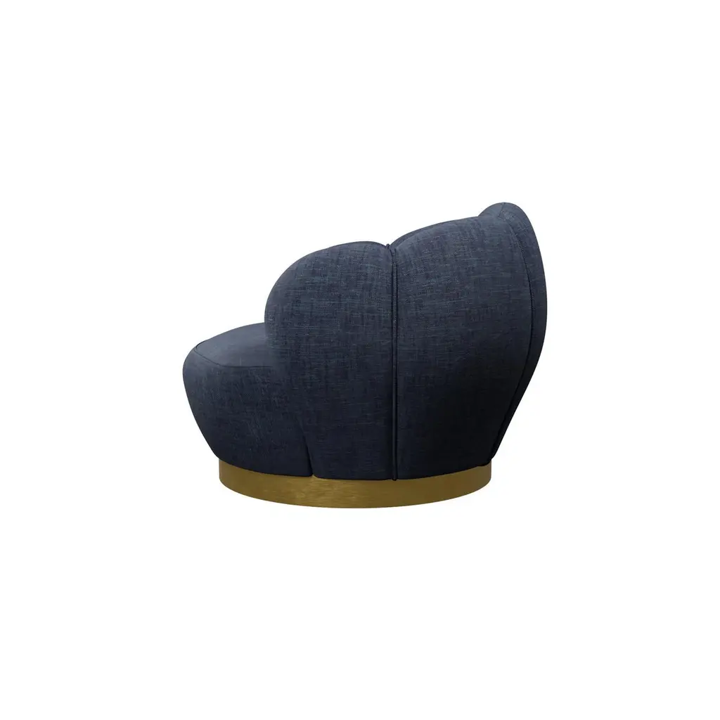 Swivel Armchair Montgolfiére With Denim Plain Fabric Handcrafted By Murmurio