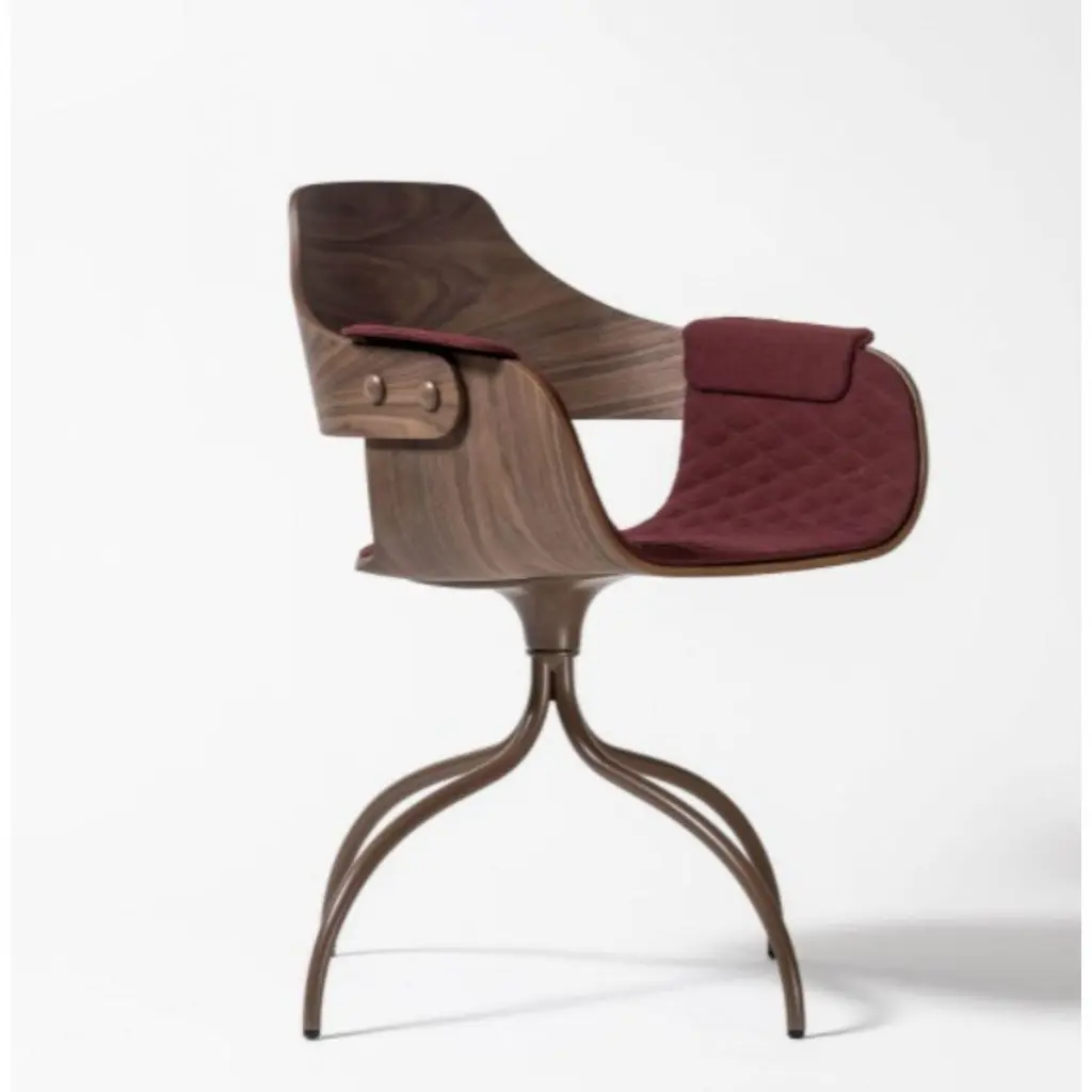 Swivel Base Showtime Beige Chair by Jaime HayonDimensions: D 55 x W 55 x H 79 cm Materials: Powder-coated steel or aluminum structure. Legs, seat, and backrest in plywood with exteriors in natural ash, walnut, or ash stained black. Metallic decorative buttons. Seat cushion, interior seat cushion, and backrest upholstered in different fabrics or leathers provided by BD.Available upholstered in different fabrics and in versions Showtime Nude. Four distinct leg structures, optional armrests with a wide variety of finishes - wooden or lacquered in diverse colors and upholstered in different materials and leathers by BD, which avails all possible combinations and contrasts. In 1972, a group of young architects and designers from Barcelona created BD with the aim of producing and marketing furniture and other objects for our projects, with complete creative freedom and with a criterion that has turned out to be quite different from the norm at companies in the sector, regarding both the shape and function.