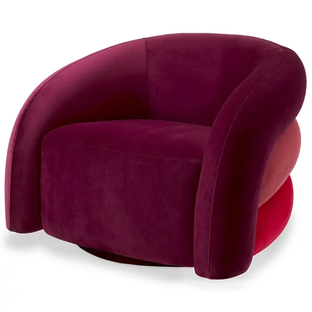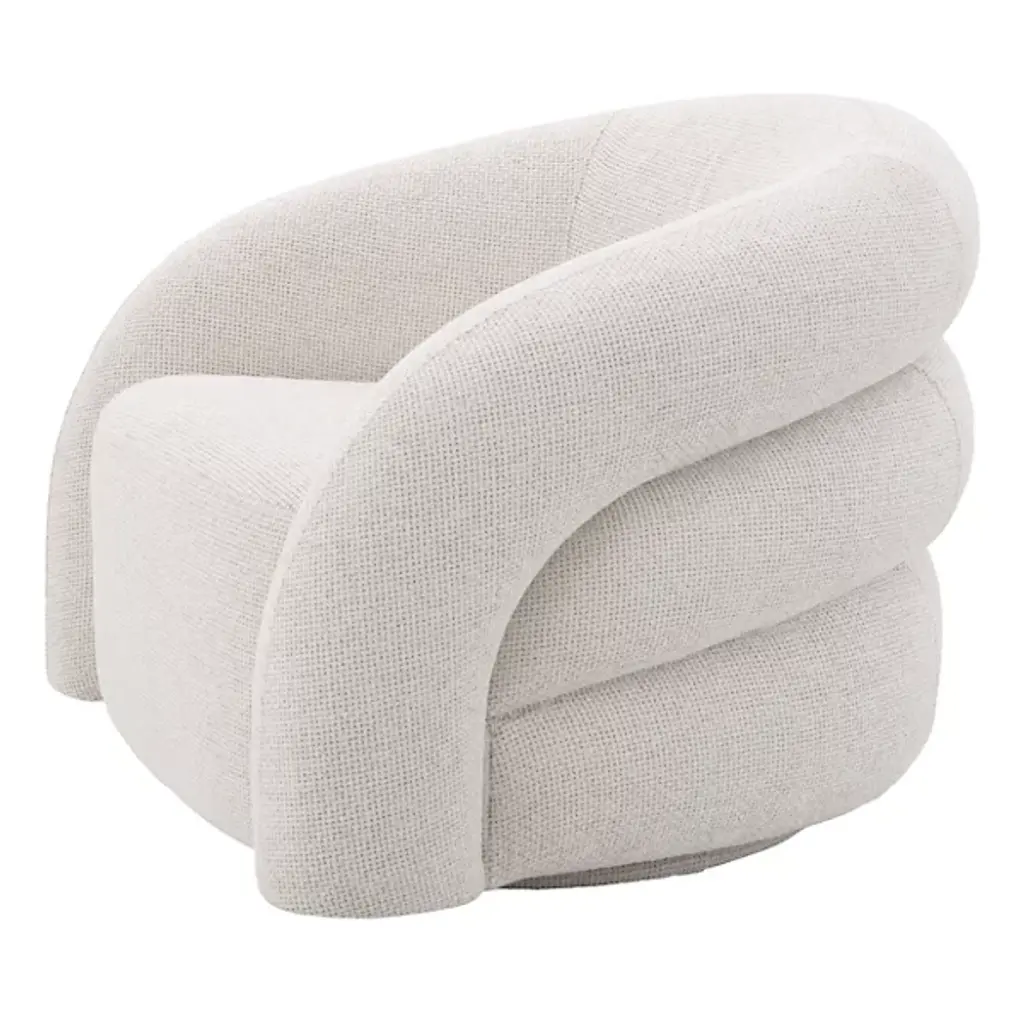The Swivel Chair Novelle from Eichholtz is where whimsical design meets unparalleled comfort. This chair’s rippled design gives it a playful character, making it a standout piece in your decorative living space. Crafted with care, it features a rounded profile and is upholstered in fine fabric for a soft and inviting feel. Your chair boasts swivel capabilities, allowing you to effortlessly turn and pivot as needed, adding to its functionality.