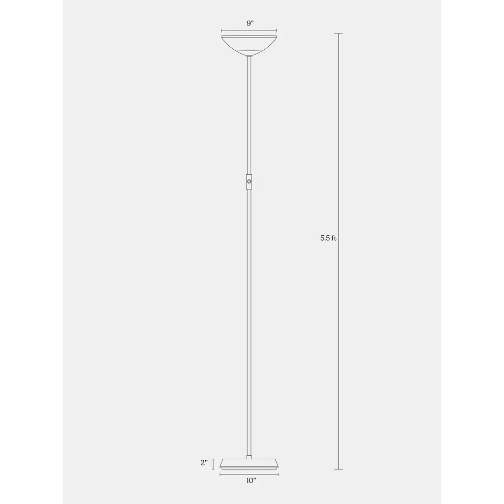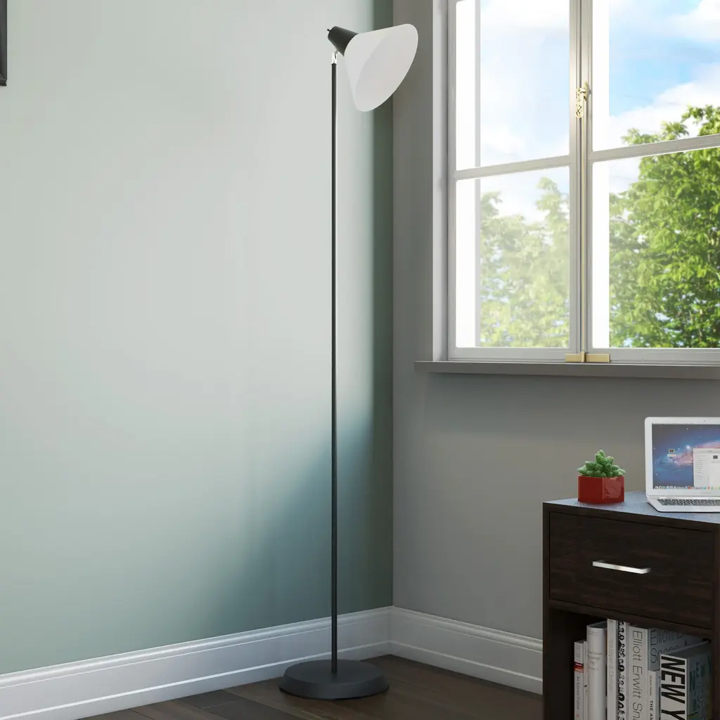 Project minimalism when you pair your favorite reading chair or writing desk with this slim floor lamp. Featuring a swiveling white acrylic shade for versatility and operating with one incandescent bulb, this clean-looking modern lamp directs bright flexible lighting wherever you need it. Use the on-off knob switch for convenient operation. Number of Light: 1 Light Light Bulb Type: Incandescent Bulb Wattage: 100 W Lighting Type: Floor Lamp Material: Metal Light Direction: Multi-directional Setting: Indoor Switch Type: On-Off Knob Switch Lighting Style: Contemporary Color: Beige Dimensions: 12 inches long x 12 inches wide x 71.5 inches high
