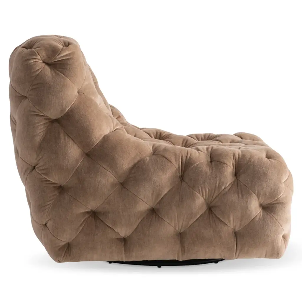 Modern design takes a classic turn with the Rigby swivel chair. Deep, buttonless diamond tufting covers the entire chair, bringing a subtle elegance while enhancing comfort and cushioning. A smooth swivel accommodates multiple focal points in a room.