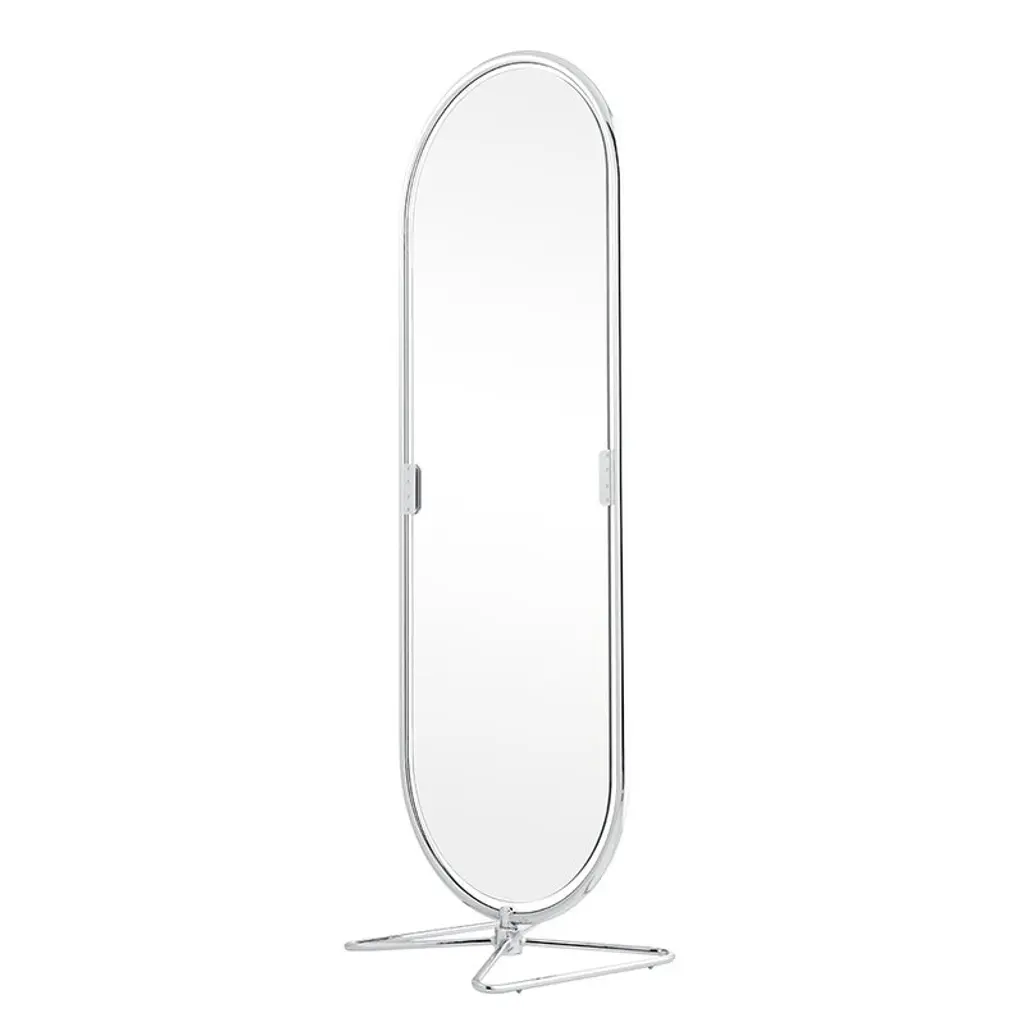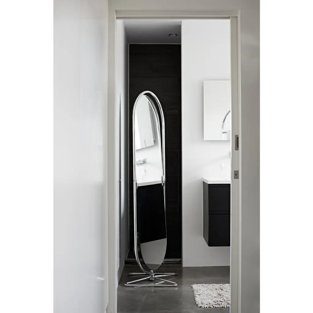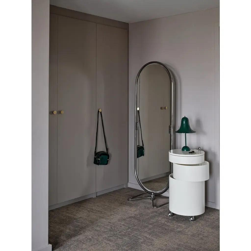 Verpan’s System 1-2-3 mirror, designed by Verner Panton, has a flowing design with references to the famous chairs with the same name. Released in 1973, the System 1-2-3 mirror has a chrome-plated, oval-shaped frame placed on a butterfly base with a swivel function. The sleek free-standing mirror will easily find its place in any dressing space, hallway or bathroom, and it makes a perfect companion for the clothes rack from the same collection.