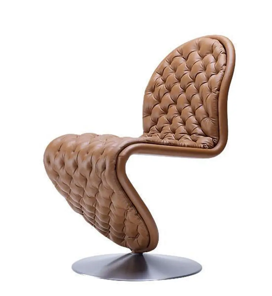 Fully upholstered S-shaped swivel dining chair on a brushed aluminium or chrome plated steel butterfly base.