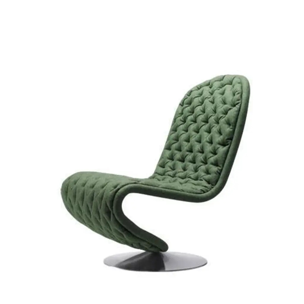 Fully upholstered S-shaped swivel low lounge deluxe chair on a brushed aluminium base.