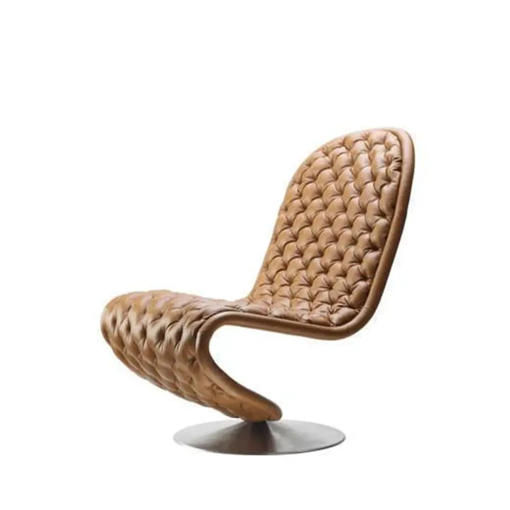 Fully upholstered S-shaped swivel low lounge deluxe chair on a brushed aluminium base.