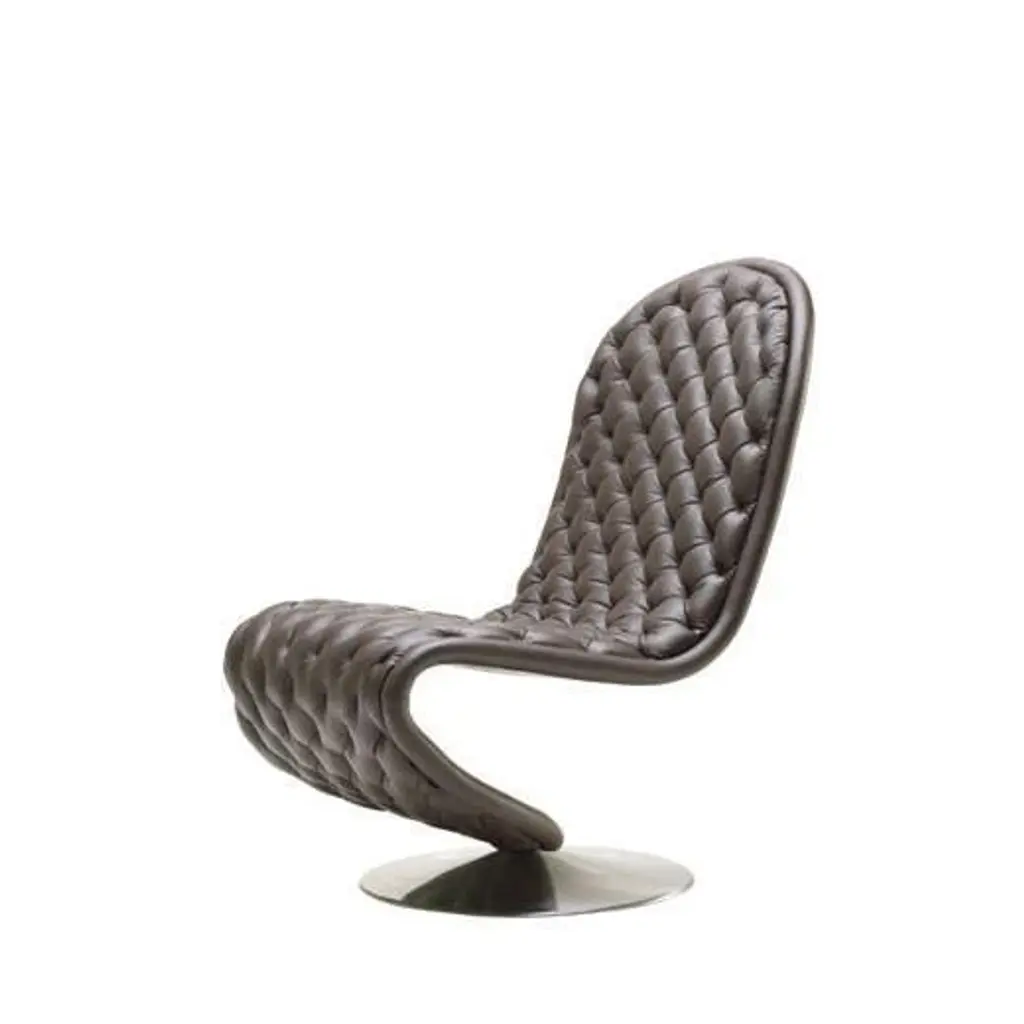 Fully upholstered S-shaped swivel low lounge deluxe chair on a brushed aluminium base.