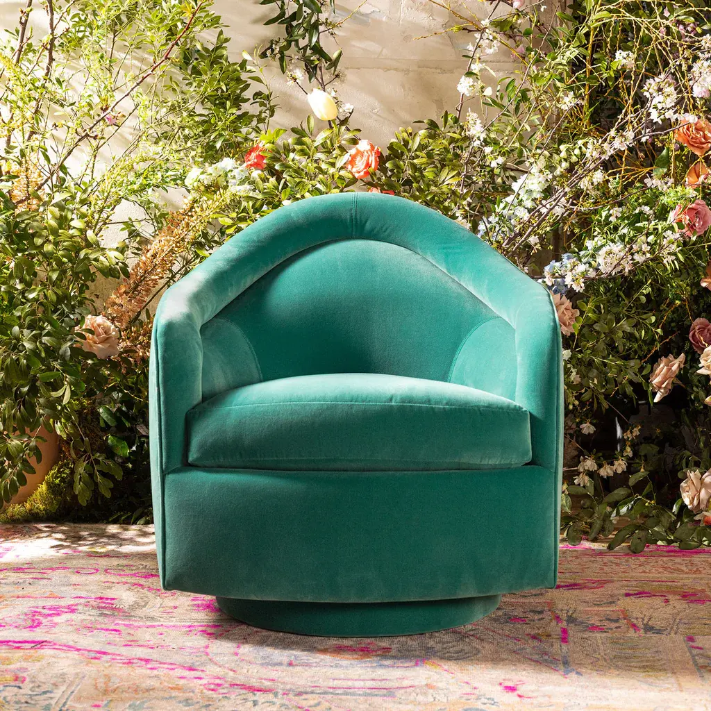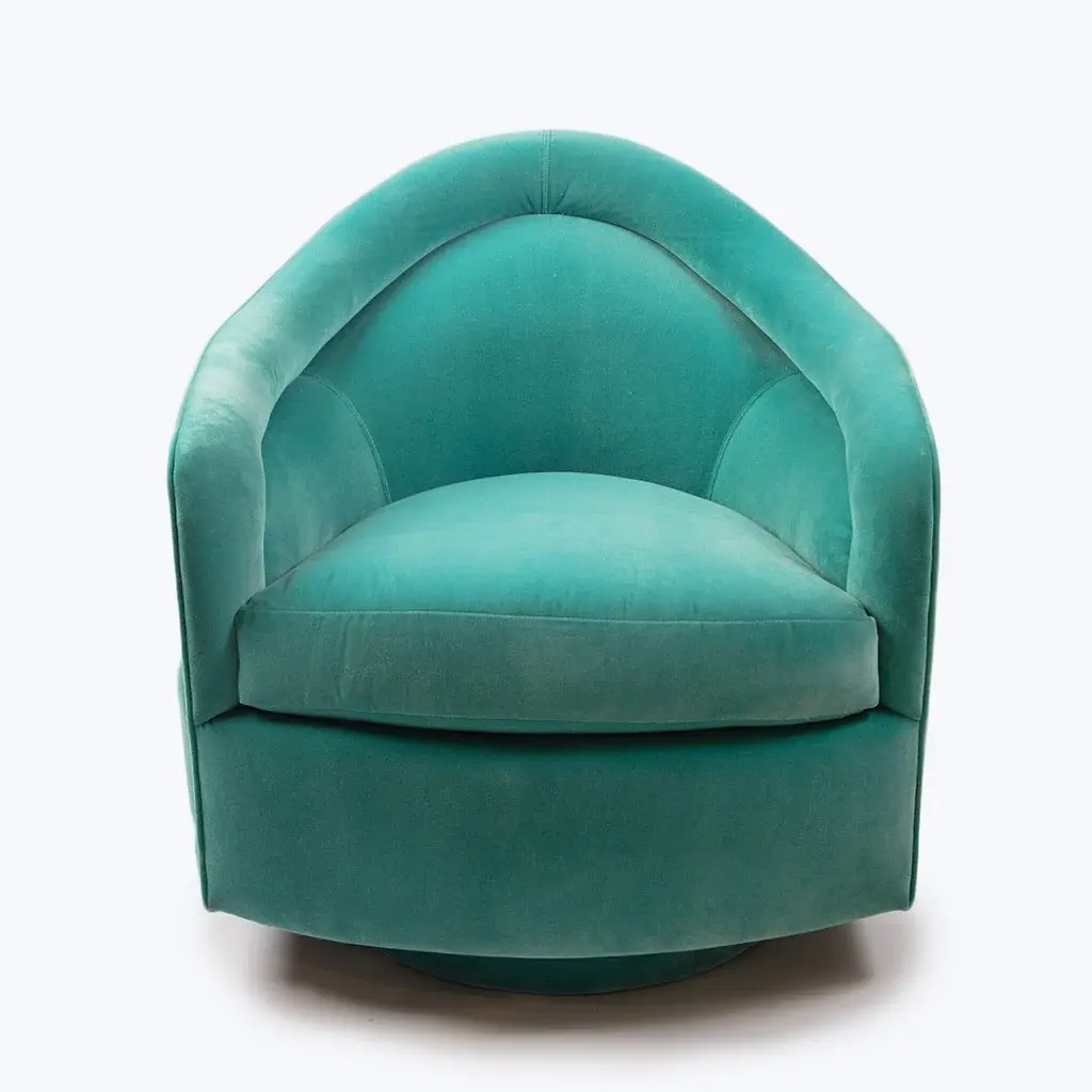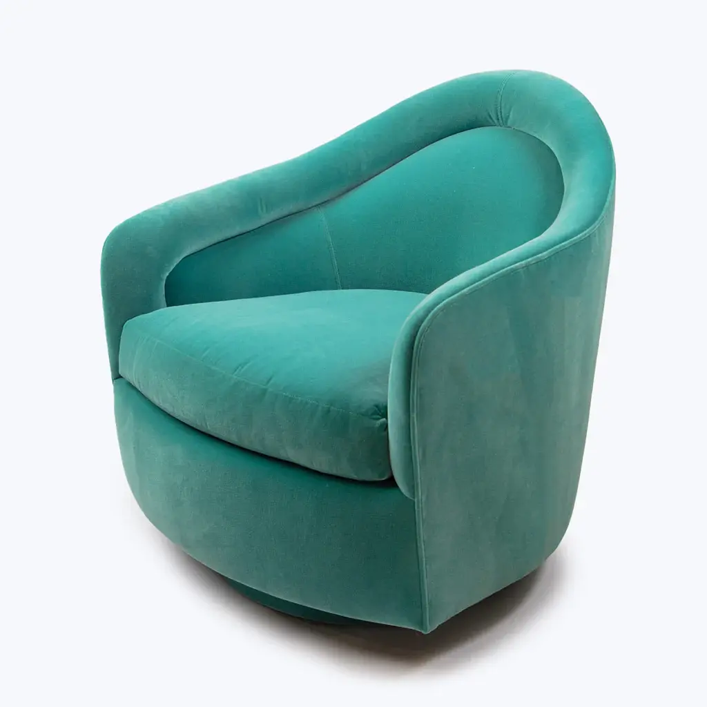 The Tear Drop Swivel Chair is a timeless modern classic originally designed by Milo Baughman in 1973. This iconic piece features a unique swivel-tilt base, providing a seating experience that gently cradles you while seemingly floating on air. Its compact size and rounded back make it perfect for smaller spaces, offering both comfort and style.Ê Constructed with premium materials, the Tear Drop Swivel Chair boasts a 100% polyester upholstery in vibrant turquoise, adding a delightful pop of color to any living room or bedroom.Ê Thayer Coggin's commitment to timeless modern design is evident in every detail of the Tear Drop Swivel Chair. Each piece is bench-made by a single craftsperson, ensuring the highest quality and continuity among related pieces. The chair's premium cushioning, made without the use of CFCs, guarantees durability and comfort for years to come.Ê With timeless appeal and durable construction, the Tear Drop Swivel Chair is sure to become a cherished heirloom for generations to come. Bring unparalleled comfort and style into your home today.Ê