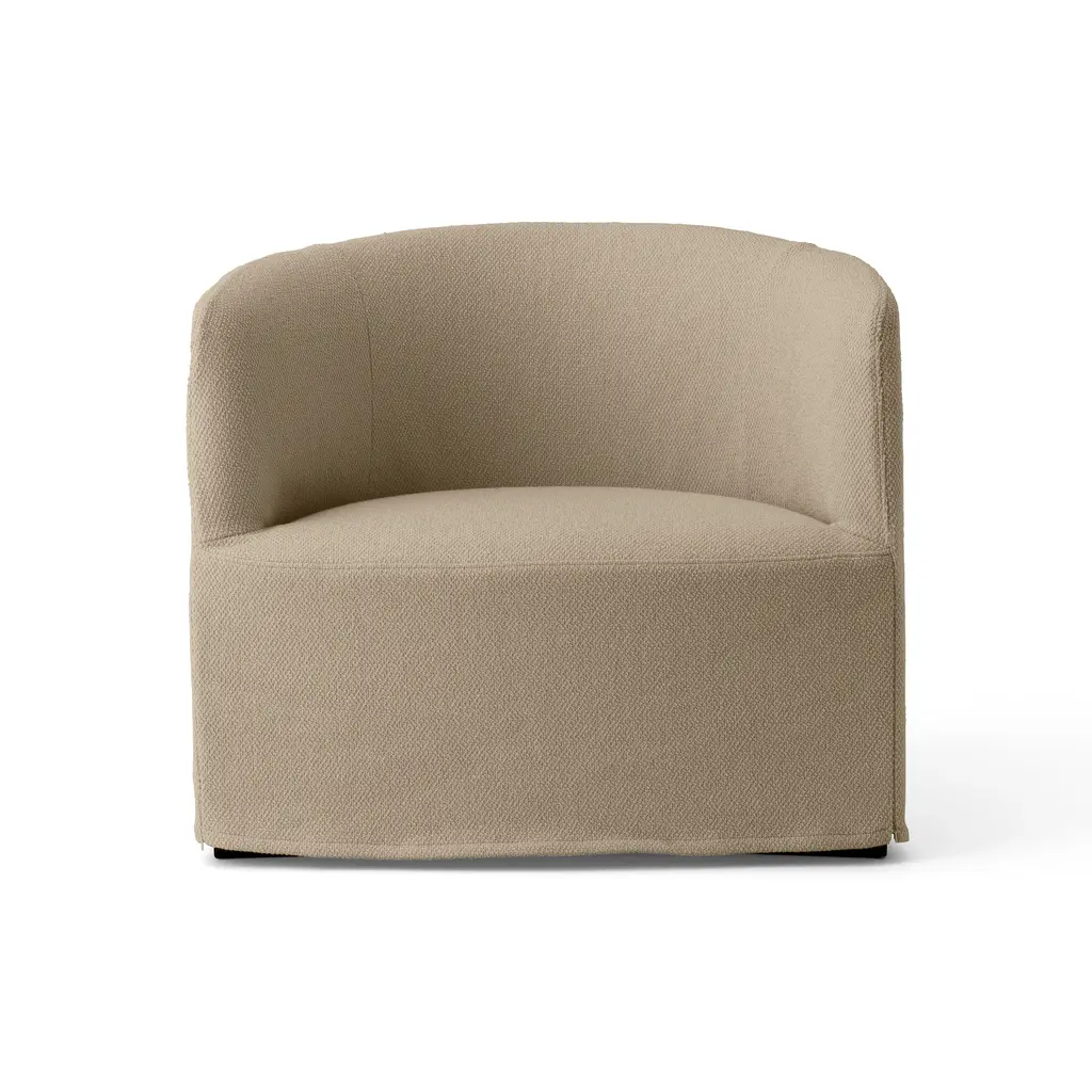 Designer Nick Ross demonstrates the potential of simple, geometric forms and cocooning comfort with his Tearoom Collection for Audo Copenhagen. The generously proportioned Tearoom Lounge Chair, Swivel with return features a 190° rotating recessed plinth base that turns to face any direction with ease. The wide, low seat and embracing form with an upright back ensure its beauty, function and comfort in both classic and contemporary spaces – from home living rooms to exclusive hotels to modern workspaces.