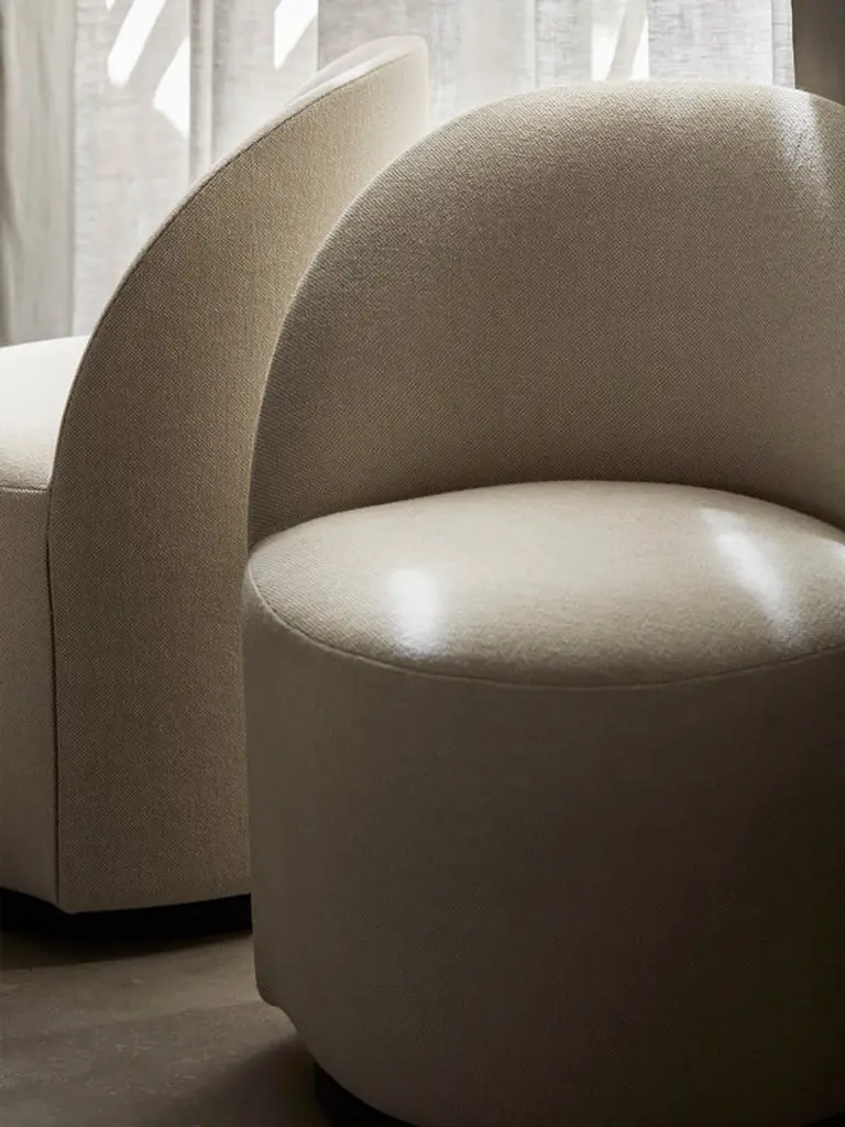 Designer Nick Ross demonstrates the potential of simple, geometric forms and cocooning comfort with his Tearoom Collection for Audo. The generously proportioned Tearoom Lounge Chair, Swivel with return features a 190° rotating recessed plinth base that turns to face any direction with ease. The wide, low seat and embracing form with an upright back ensure its beauty, function and comfort in both classic and contemporary spaces – from home living rooms to exclusive hotels to modern workspaces.