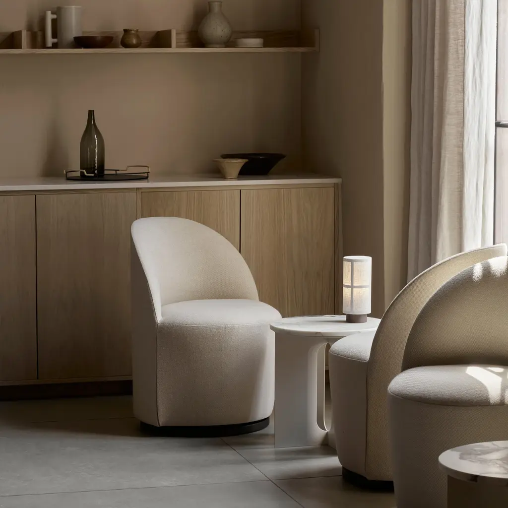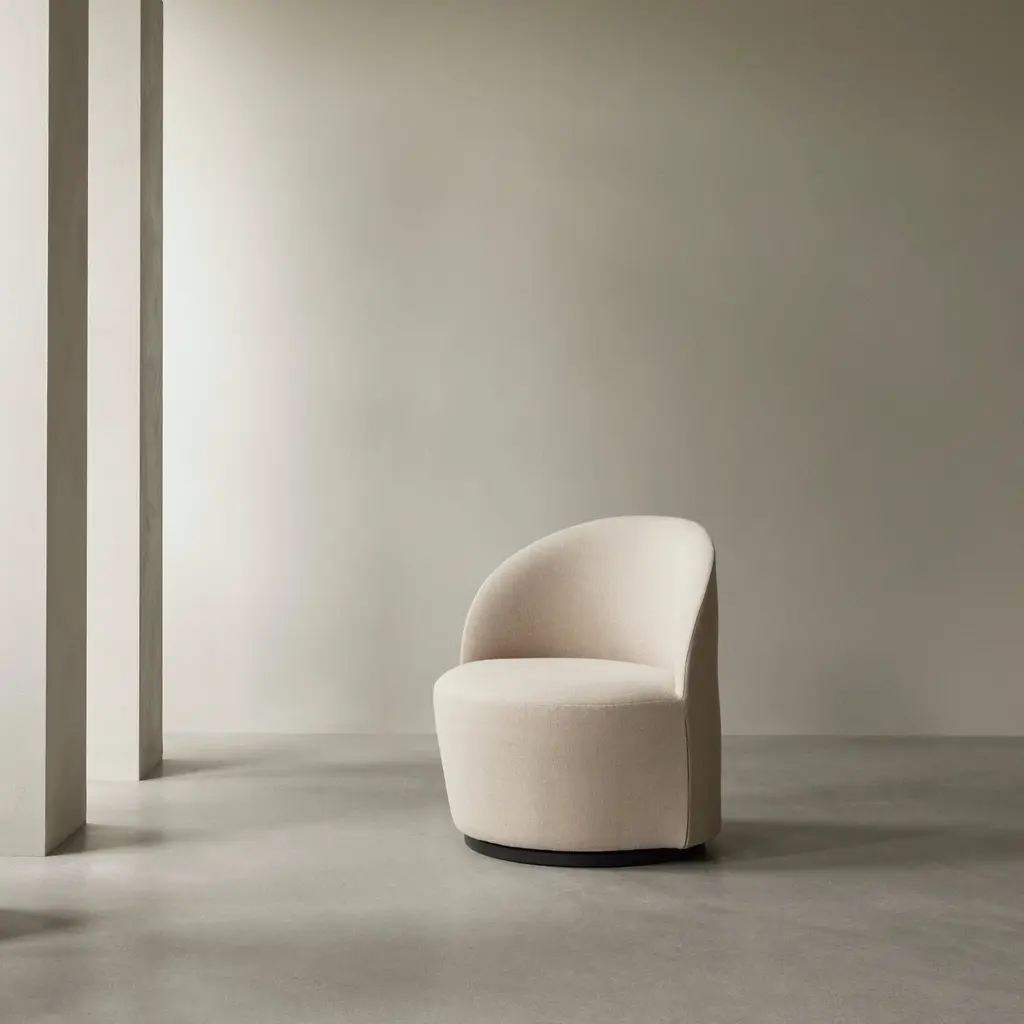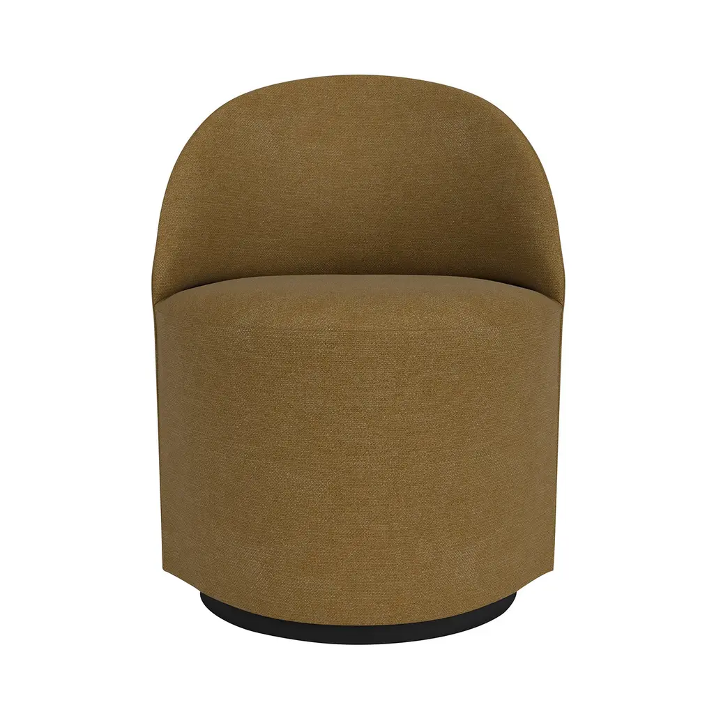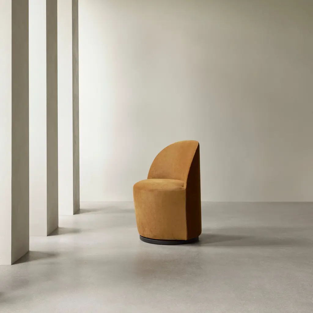 Cocooning curves and richly detailed upholstery meet functional convenience in Tearoom Side Chair with a return swivel base. Designer Nick Ross's seating is a study in minimalist luxury, offering mood-lifting comfort and a supportive sitting position. Set on a recessed plinth base, its smooth, 190-degree swivel function ensures full freedom of movement.