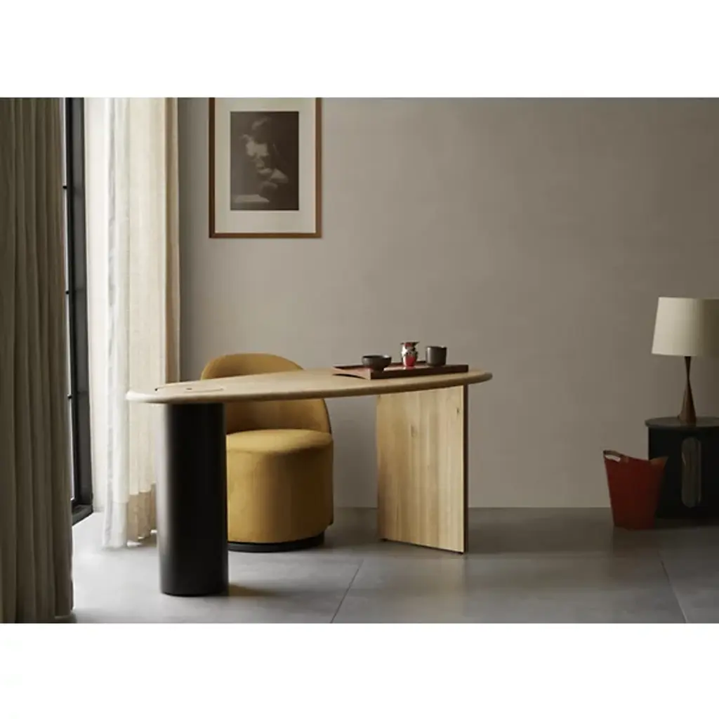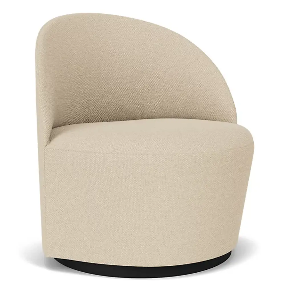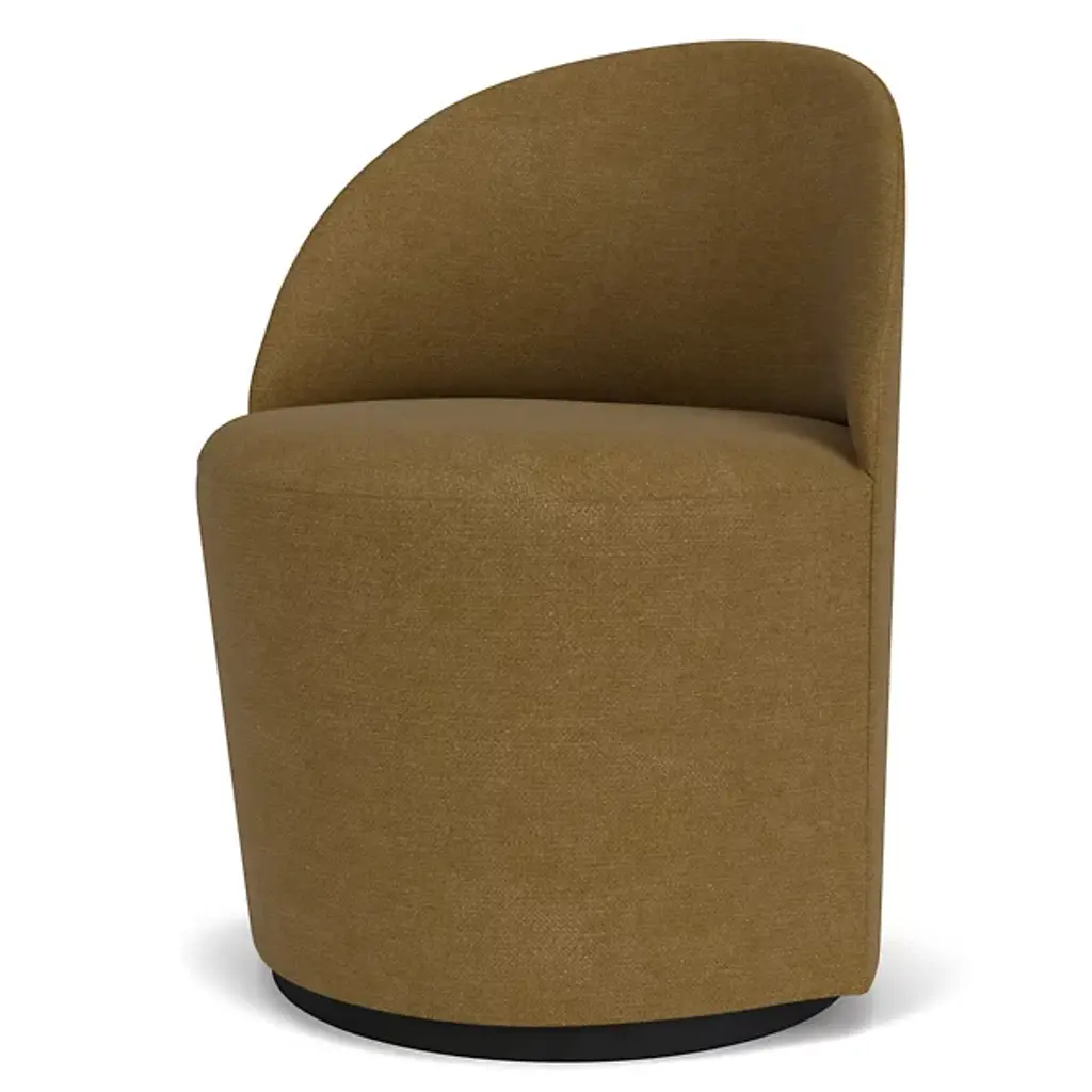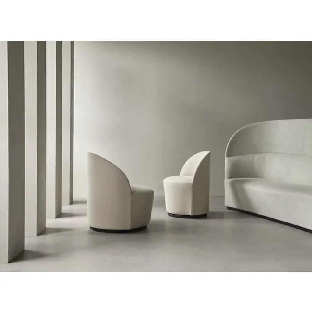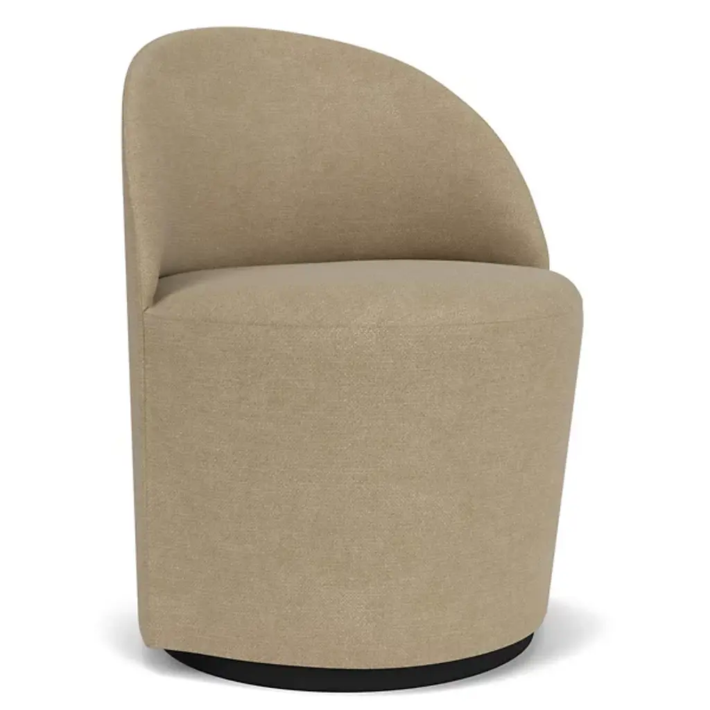 Add understated elegance to lounge areas with the Tearoom Swivel Side Chair from Audo Copenhagen. Designed by Nick Ross, this chair embodies his vision of blending geometric simplicity with luxurious comfort. The chair rests upon a rotating steel base turns with ease in both directions and smoothly returns to its original position. Filled with plush HR foam and softly upholstered, it offers a cozy seating experience that you can sink into. At the same time its simple, Scandinavian design complements any from home, office, or public space, providing enchanting charm without dominating its surroundings.