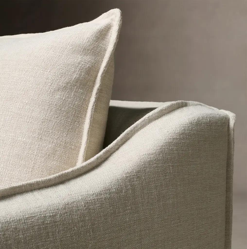 The Dune Swivel Chair is a vision of effortlessness and ease. It boasts a deep seat, plush cushioning, and relaxed slipcover with hand-sewn flange seams for an elegant finish. Handcrafted in North Carolina.