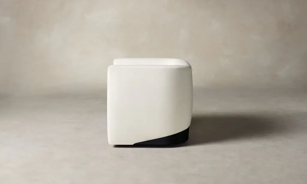 The Henri Swivel Chair offers intrigue at every angle. With convex arms that wrap around a low-slung seat, it turns to reveal an exquisite white oak or walnut accent at the base. Handcrafted in North Carolina.