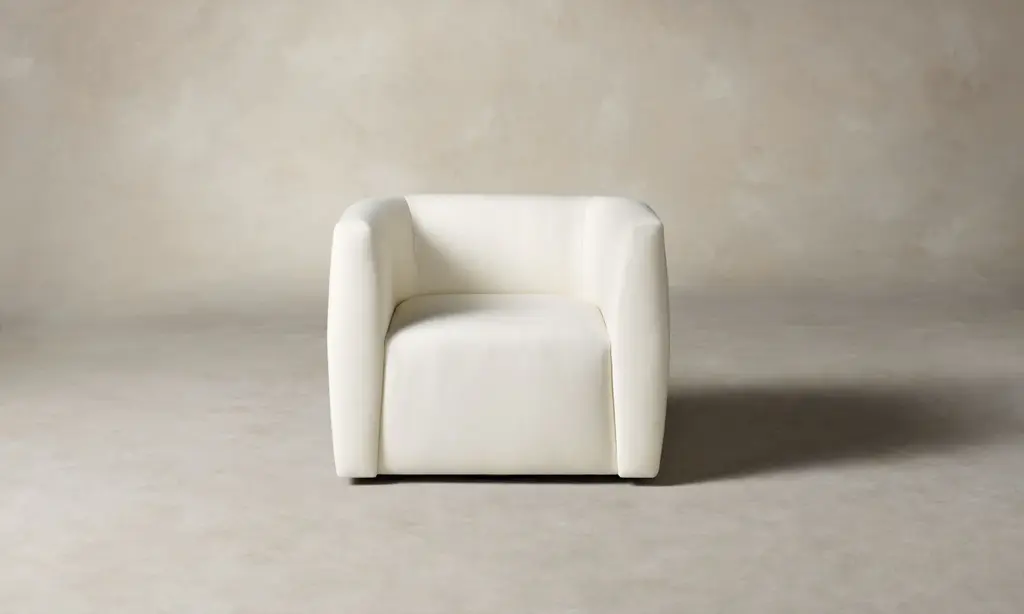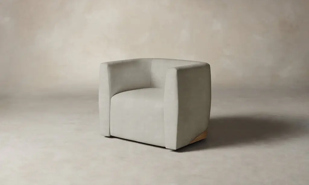 The Henri Swivel Chair offers intrigue at every angle. With convex arms that wrap around a low-slung seat, it turns to reveal an exquisite white oak or walnut accent at the base. Handcrafted in North Carolina.