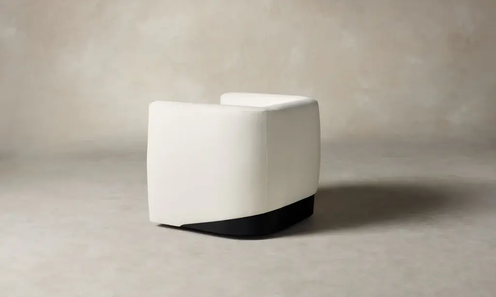 The Henri Swivel Chair offers intrigue at every angle. With convex arms that wrap around a low-slung seat, it turns to reveal an exquisite white oak or walnut accent at the base. Handcrafted in North Carolina.
