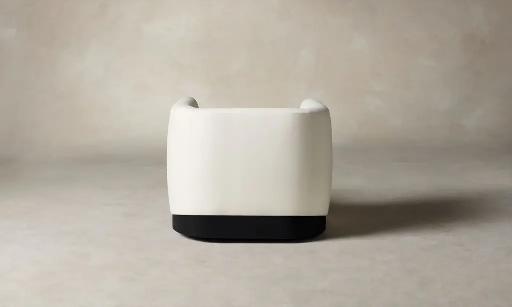 The Henri Swivel Chair offers intrigue at every angle. With convex arms that wrap around a low-slung seat, it turns to reveal an exquisite white oak or walnut accent at the base. Handcrafted in North Carolina.
