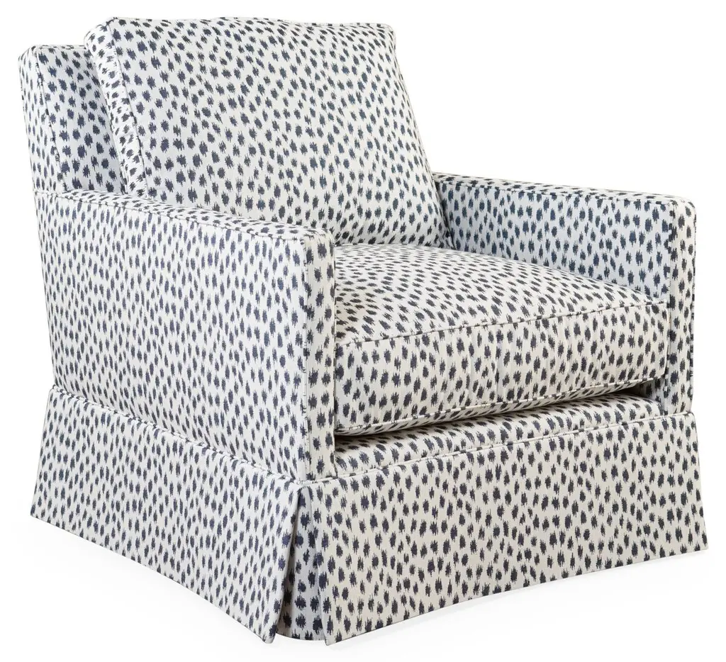 Luxuriate in a chic chair with an important extra. Our Thunderbird Swivel Chair turns so you can rotate to join the conversation, or change your view. The classic shape works in traditional or modern rooms. Cloud 9 cushions provide the ultimate in comfort. Tobacco finish on maple trim. Upholstered in your choice of designer fabrics. Exclusively from Annie Selke.