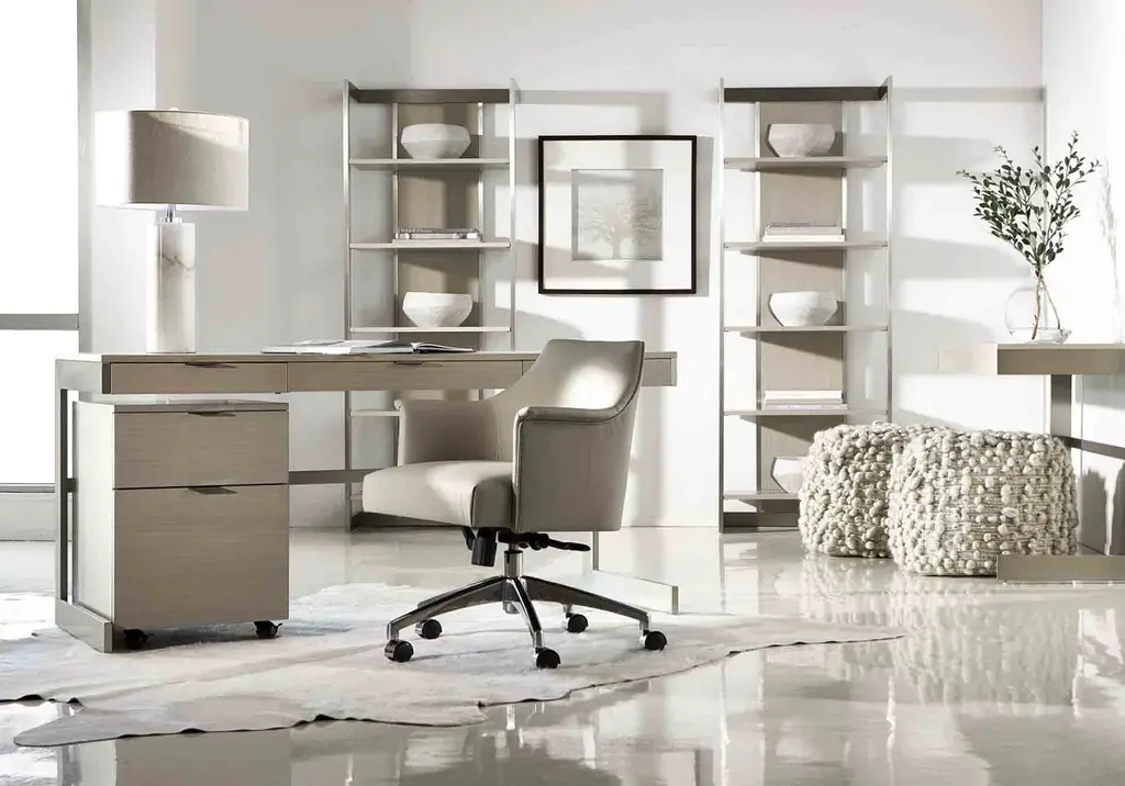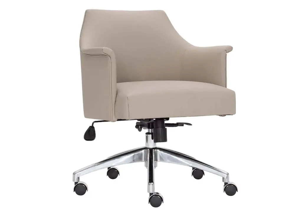 Sleek and classic, the Tiemann is a beautiful addition with its traditional silhouette and neutral upholstery. Its swivel base features metal casters, tilt, and adjustable height to create the ideal chair for any office setting.