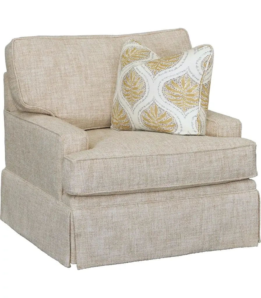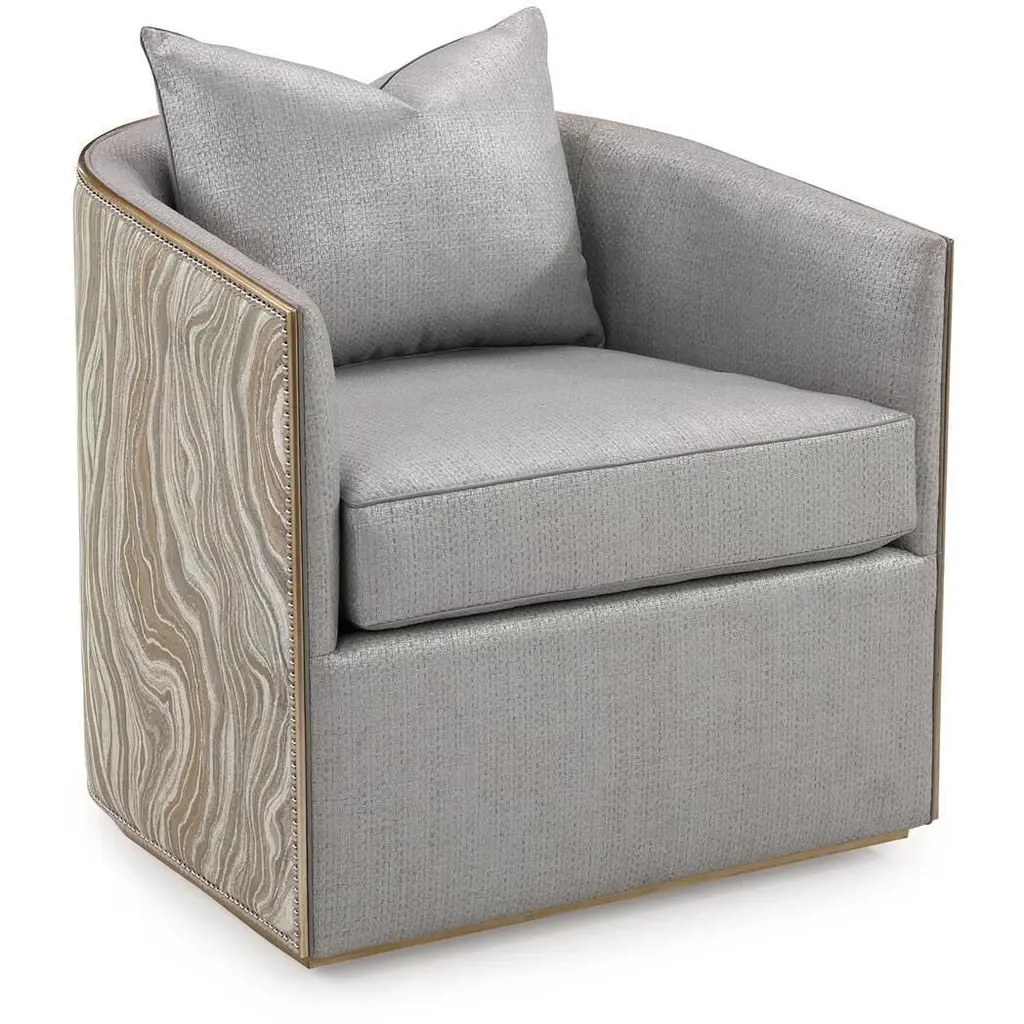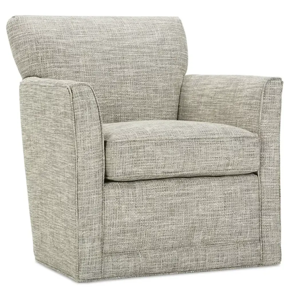 Indulge in contemporary design and absolute relaxation with the Times Square Swivel Chair by Rowe Furniture. This chair boasts sturdy wooden legs that radiate natural charm and stability, providing an ideal base for your living space. The plush, upholstered seat with a poly-wrapped foam cushion envelops you in comfort, making it the perfect choice for reading or sipping tea. Elevate your home decor with this stylish and cozy lounge chair, creating an inviting ambiance in any room.