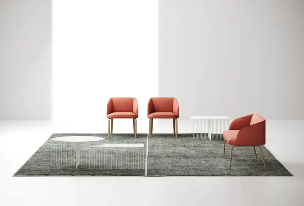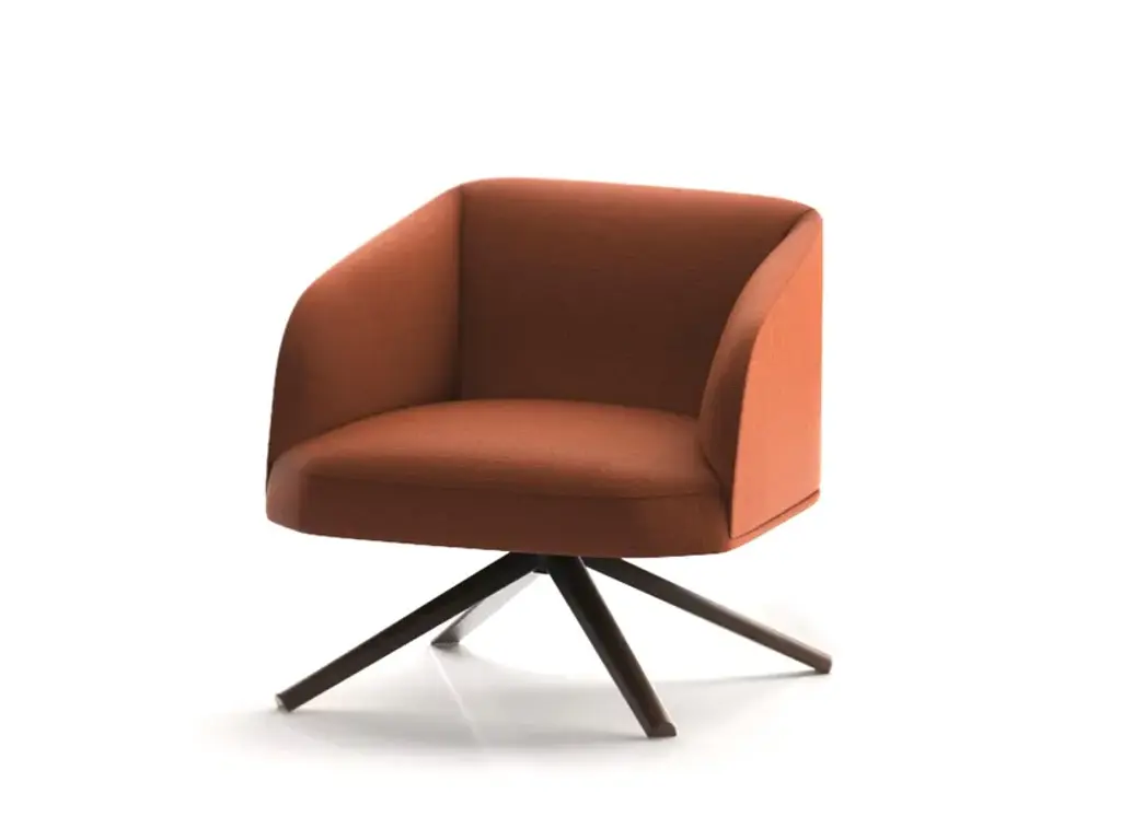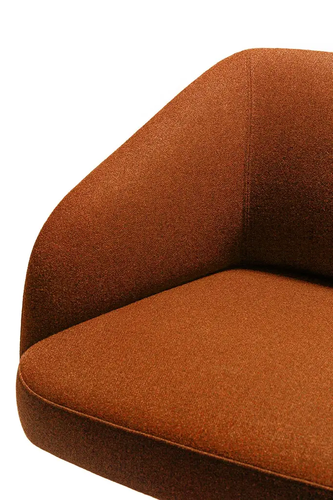 Timo is a easy chair with armrest, padded and upholsterd in fabric, equipped with swivel base .With their slender lines, light volumes and versatile nature, the chairs and sofas in the Timo collection designed by Federica Biasi combine understated style with shapes inspired by nature. Consisting of two dining chairs, a lounge chair and a two-seater sofa, the seating selection is designed for both the home and contract markets. Substantial padding enhances the comfort levels and geometric lines are made sleeker by rounded corners and shapes reminiscent of the natural world, which is behind the name of the collection. “Timo” is Italian for “Thyme”, which is one of the most popular Mediterranean plants due to its rich, sweet aroma.· Reinforced frame for public area use· Flame-retardant polyurethane foam· Undeformable polyurethane foam of different densities· Reinforced stitching with carbon fiber support· Bases customizable with other colors on customer’s reques