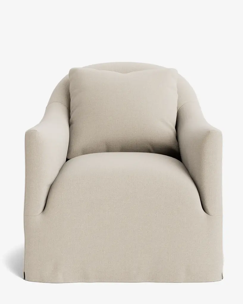 Balancing traditional lounge chair design with modern functionality, our Trudeaux Slipcover Swivel Chair was designed with luxurious comfort in mind. Featuring feather blend cushions within its dramatic structure, the swivel chair is full and inviting. Customizable in a wide array of fabrics, you can make this swivel chair completely your own.