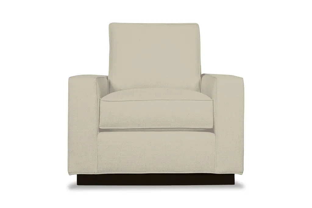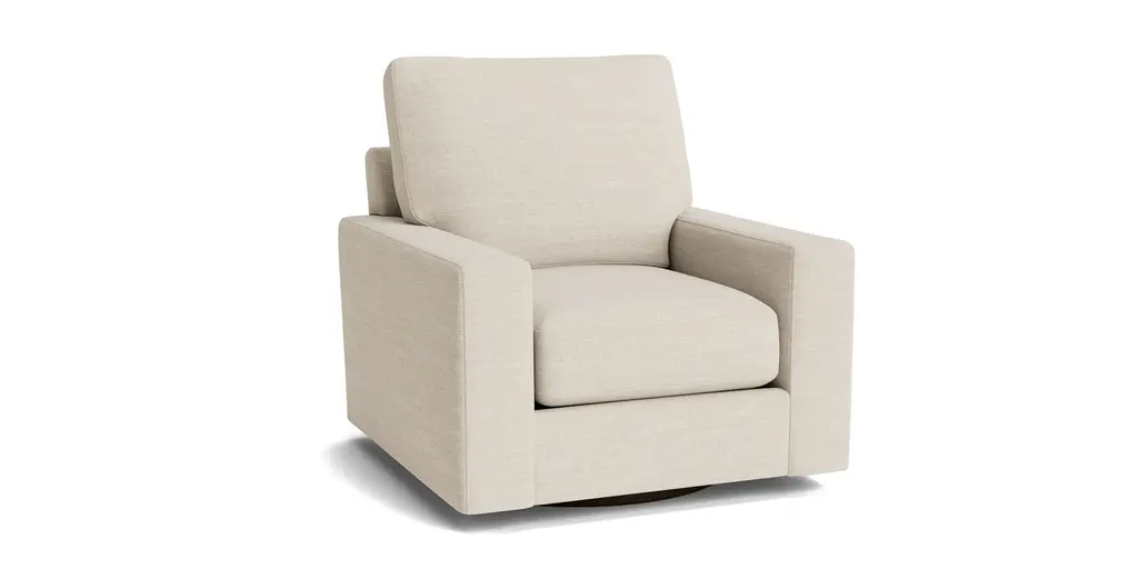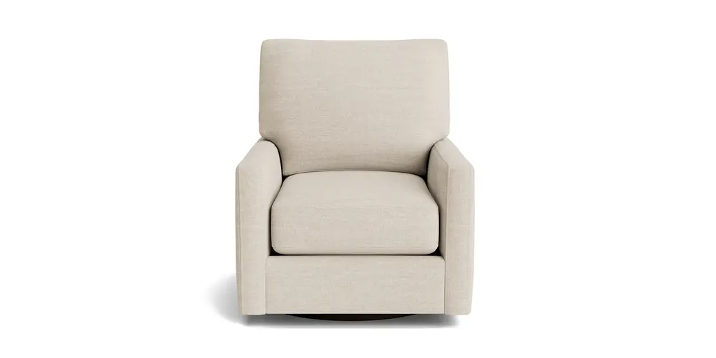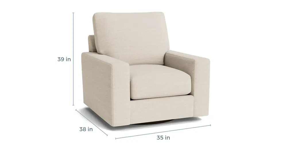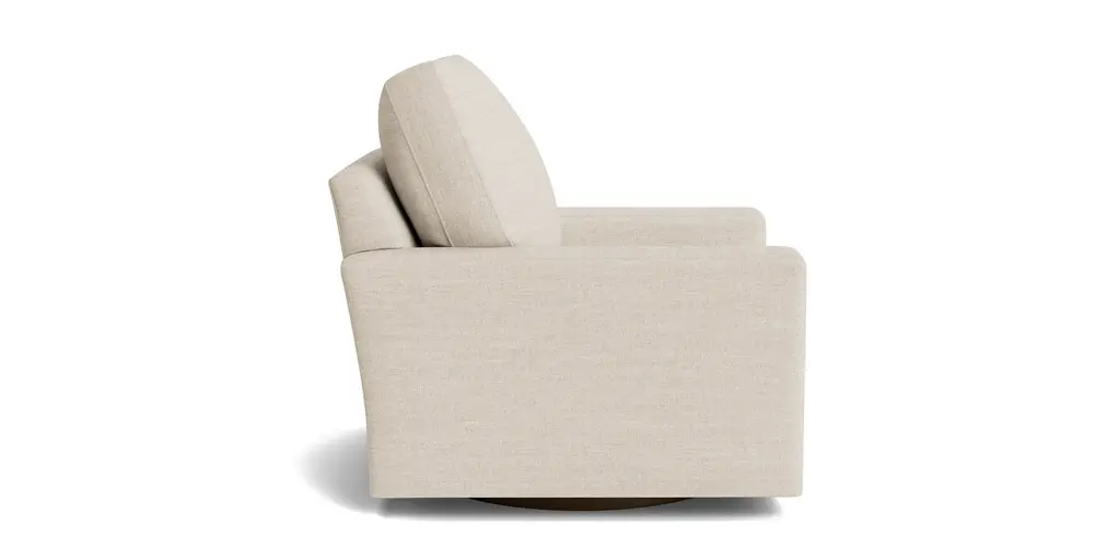 Low-slung clean lines and a substantial, wide-armed presence come together in Bassett's True CustomLarge Track Arm Swivel Chair. Whether you need seating for an open concept space or a chair with the flexibility to make the most of a small room, the concealed swivel base allows your attention to easily flow with the activity. Dress the chair in any of Bassett's designer fabrics for a truly custom seat. Select your preferred details like the cushion comfort and other design options to create a chair that's as unique as you are - and you want your home to be.