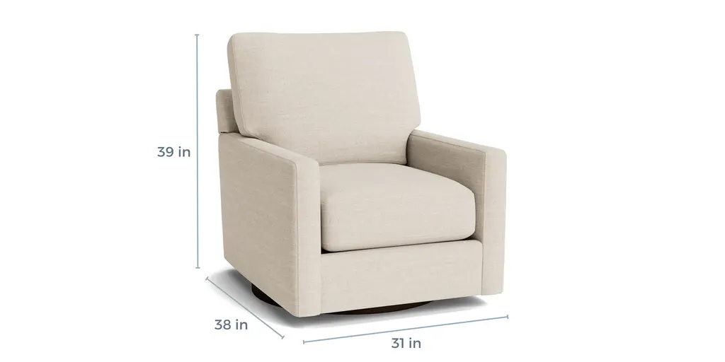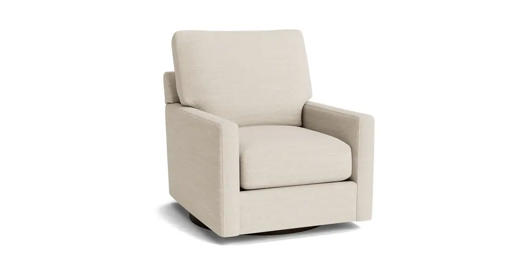 Stay in tune with your modern sensibilities and lean into the relaxation of our streamlined True Custom Track Arm Swivel Chair. The contemporary, low profile track arms provide both sleek looks and embracing comfort, while the concealed swivel base promises easy integration into your seating group. Apply your choice of fabric, choose the cushion that suits your preference, and add any other design options to make this custom swivel chair your own.