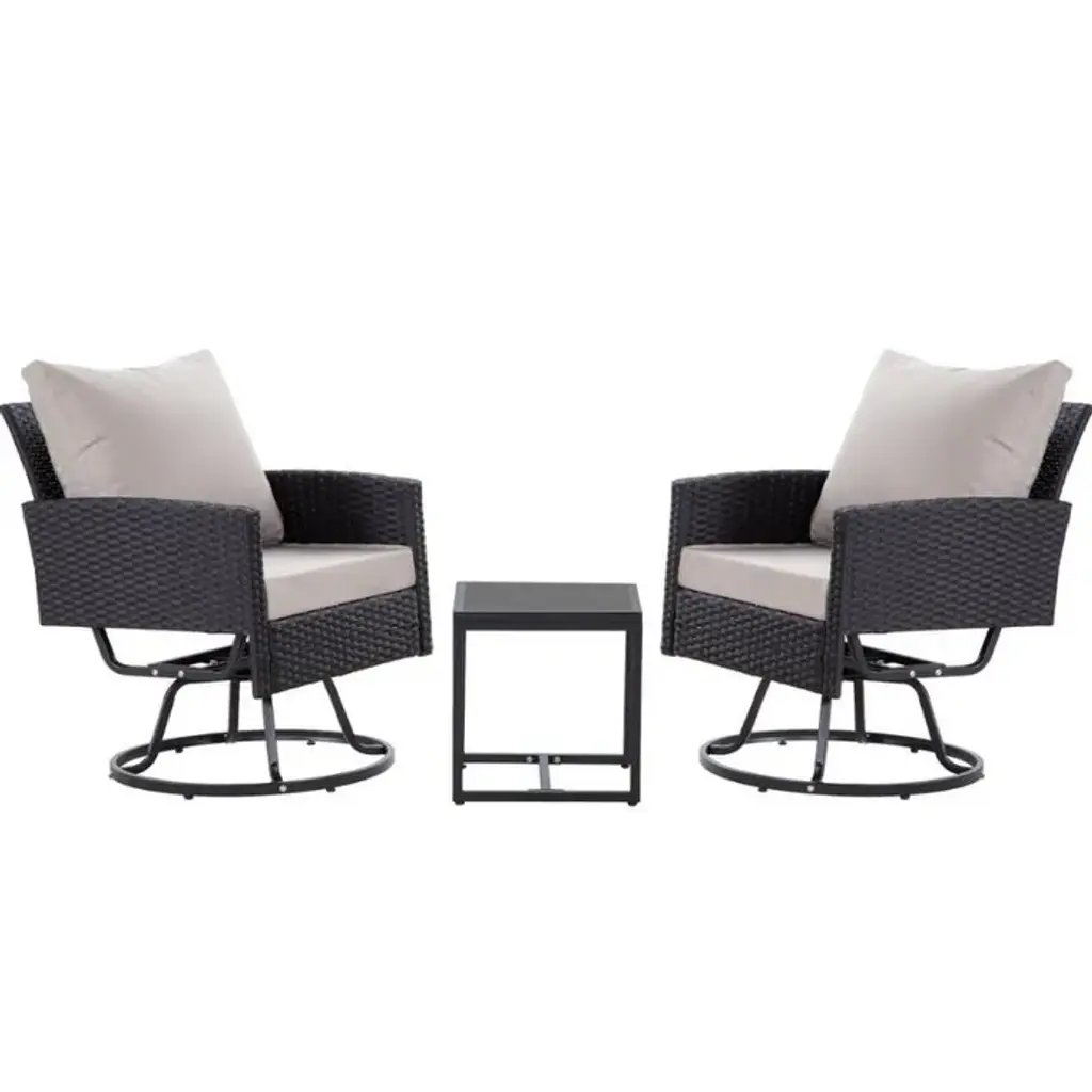 Transform your patio, porch, balcony, or backyard into a stylish retreat with our hand-woven rattan bistro set, designed for both comfort and timeless charm. This 3-piece conversation set includes two rocking swivel chairs and a clear-pattern glass table—perfect for relaxing, entertaining, or enjoying a quiet moment outdoors.
