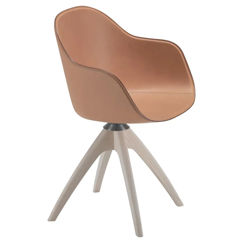Universal Chair is the name of the new family of seats designed by Jean-Marie Massaud forMDF Italia, which stands out for its impeccably elegant lines and extraordinary ergonomics. In the chair - with wooden or upholstered backrest - and armchair - also with wooden backrest or fully upholstered - the three-dimensional back is the focal point of the seat; it consists of two curved elements pressed from a mechanical mould, then coupled and assembled, with a procedure that echoes the refined savoir-faire of the luthier.The design takes its name, above all, from the disc of the seat, the beating heart of the piece, designed to accommodate different types of bases and backrests, so lending itself over time to the development of an infinite variety of possible configurations.The project has three cornerstone values:Sustainability, the concept focuses on respect for the environment: each component of the seat can be disassembled to facilitate proper recycling.Comfort, ergonomic research into the design has led to the development of a three-dimensional backrest made from two curved coupled elements, providing unique comfort.Elegance, an elegant and timeless design that enhances any type of context in which the seat is inserted, whether domestic or contract.Universal Collection is the name of the new family of seats designed by Jean-Marie Massaud for MDF Italia, which stands out for its impeccably elegant lines and extraordinary ergonomics.In the chair or armchair version - with wooden or fully upholstered backrest – the three-dimensional back is the focal point of the seat; it consists of two curved elements pressed from a mechanical mould, then coupled and assembled, with a procedure that echoes the refined savoir-faire of the luthier.The design takes its name, above all, from the disc of the seat, the beating heart of the piece, designed to accommodate different types of bases and backrests, so lending itself over time to the development of an infinite variety of possible configurations.The project has three cornerstone values:Sustainability, the concept focuses on the respect of the environment: each component of the seat can be disassembled to facilitate proper recycling.Comfort, ergonomic research into the design has led to the development of a three-dimensional backrest made of two curved coupled elements, providing unique comfort.Elegance, an elegant and timeless design that enhances any type of context in which the seat is inserted, whether domestic or contract.Wooden backrestThe concept was developed from a study on the curving of the wood which led to the definition of an innovative, now patented production system. The 3D effect is obtained from two curved elements, joined and assembled, available in the two finishes brown oak and bleached oak.The wooden backrest version in bleached oak or brown oak is available with or without bumpers in matching colours .The bumpers are warmly recommended in the brown oak finish. Padded backrestLoad-bearing shell in tubular metal padded with polyurethane foam. The upholstery covers the backrest completely and is not removable.SeatSeat comprising foam injection moulded polypropylene shell with polyurethane foam rubber. The upholstery covers the seat completely and is not removable.BasesBases with universal disc in die-cast aluminium with micro- embossed finish in white, graphite grey and shadow grey. The disc can be used with two different bases:4-point-star base in die-cast aluminium with micro-embossed finish in white, graphite grey and shadow grey. 360° swivel.Fixed version on request.4-legged oak base with structure in clear lacquered natural solid oak, available in the two finishes brown oak and bleached oak. Fixed version.