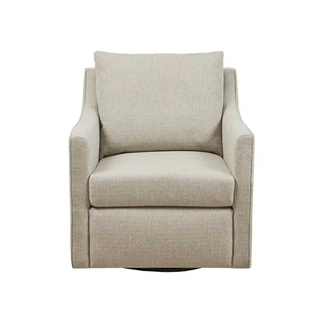 Upholstered Swivel Chair With Sloped Arms And Back Pillow