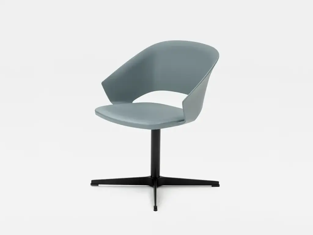 Vad Girevole Cuoietto is a leather trestle-based swivel chair with armrests.Swivel metal trestle and polypropylene shell, covered in leather grade 2, natural color.Vad is a collection of chairs available with different types of legs (wood, metal rod, or swivel trestle) and with a reinforced polypropylene body obtained by injection moulding. The shell can be upholstered in hard leather or padded and upholstered in fabric, soft leather and eco-leather.MATERIALS AND FINISHES Structure: chromed or painted metal or steel for outdoor use. Seat: polypropylene. Cover: fabric, leather or full-grain hide.