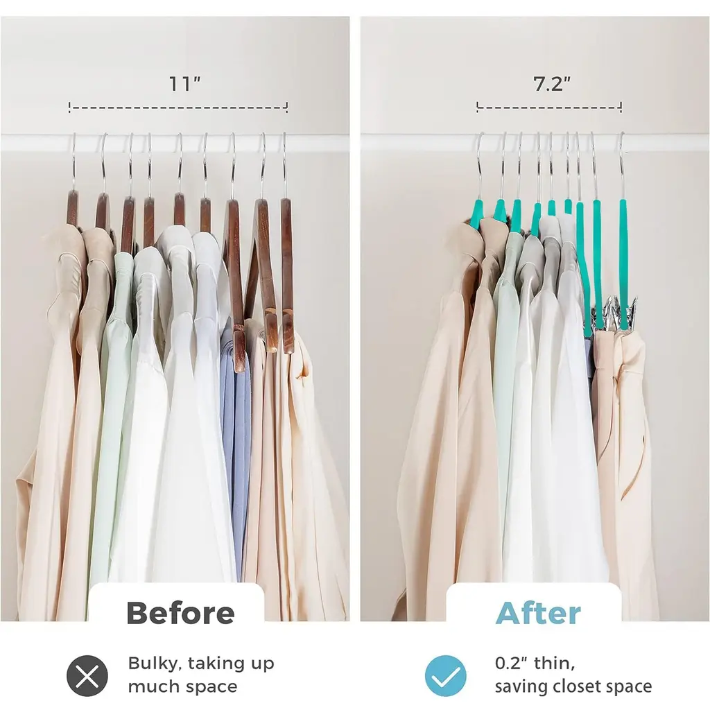 VECELO Abs Plastic Clothes HangersFeature:【Swivel Hooks】:Attractive non slip hangers featuring 360 degree swivel, shiny, chrome hooks and notched shoulders that will make hanging clothes a simple pleasure!【Non Slip 】: These non-slip hangers keep garments in place and prevent them from slipping off. Even plus-sized shirts and wide-neck blouses are held securely by the hanger's supple material. The coating also protects garments from creases and wrinkle.【Non Slip Pants Bar】:The pant hangers feature a horizontal bar that is covered in luxurious that both grips and prevents creases. Before 1st use: rinse hangers under cold water for 30 seconds to remove any residue and twist the hook with light force to engage the swivel.【Space Saving】:Did you know you could expand your closet space for a fraction of the cost of a remodel? Well with VECELO's Space Saving Hangers you absolutely can! Their slim shape can increase your closet storage by up to 50% allowing you to hang more clothes in the same amount of space【Premium Hangers】:Say goodbye to flimsy plastic or wire hangers. Upgrade to luxurious yet affordable hangers. 【Gift Benefits】:Purchase of the hanger will give you a freebie as shown in the picture.Specification:Product Dimensions: 16.53x8.26 inches Package Contents: 40 Pack"Exquisite and inviting,Vecelo Furiniture encompasses traditional and transitional designs. Taking cues from time-honored craftsmanship, these pieces simultaneously draw from tried and true roots and contemporary elements. Vecelo Furiniture, With a breadth of styles to choose, transform your home into a welcoming haven.Our designer-curated lifestyles reflect current trends and timeless essentials, giving you the know-how to achieve your vision. With diverse style inspirations to choose, you'll be able to find the one that speaks to you - or mix and match across collections for a style that all your own.Vecelo Furiniture help you achieve the home of your dreams, every step of the way.Click here to explore the classic style inspirations: beds frame, dining tables, nightstands,computer desks, chairs and etc.