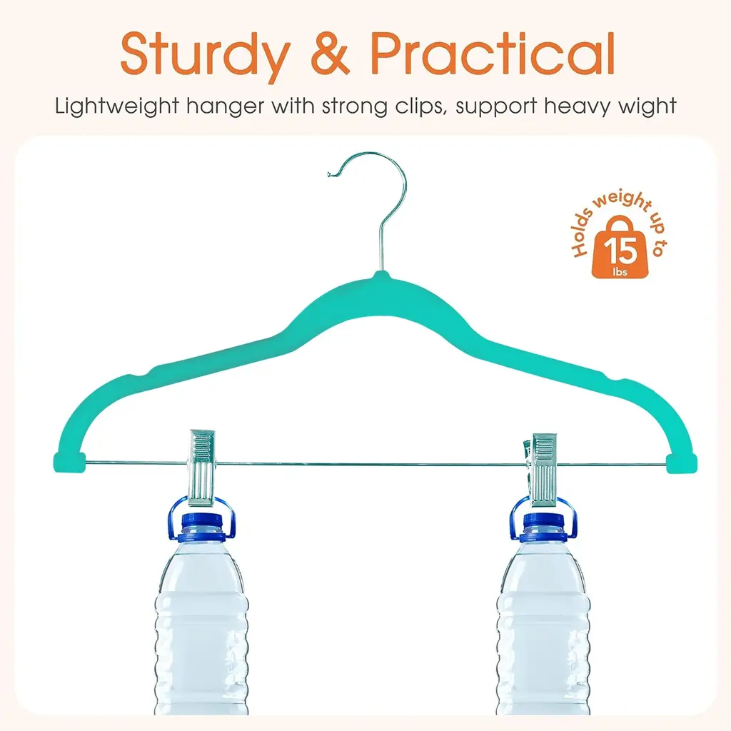 Vecelo 40 Psc Velvet Clothes Hangers,pant Hangers Heavy-Duty Hangers With Adjustable Clips - 100 - Green