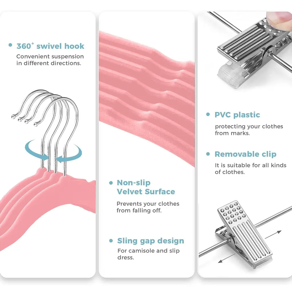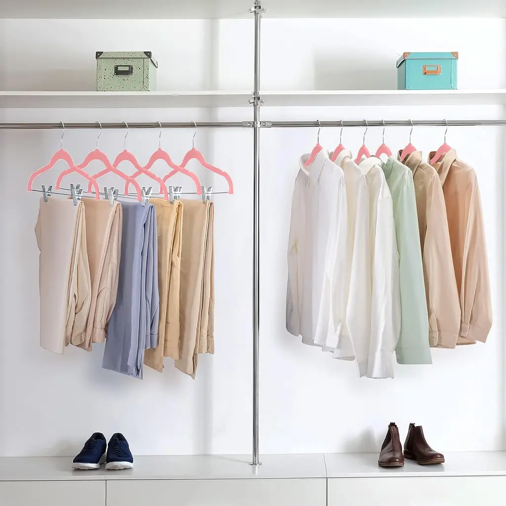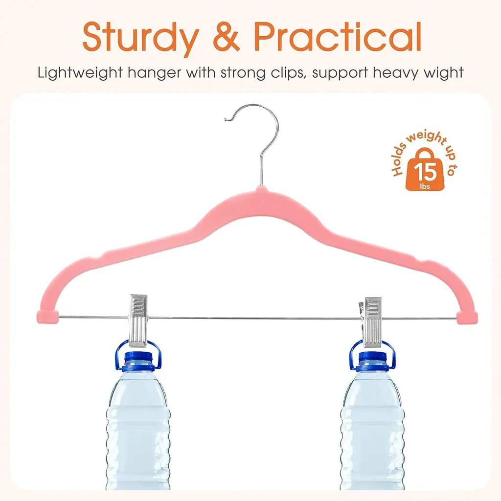 Vecelo 40 Psc Velvet Clothes Hangers,pant Hangers Heavy-Duty Hangers With Adjustable Clips - 100 - Pink