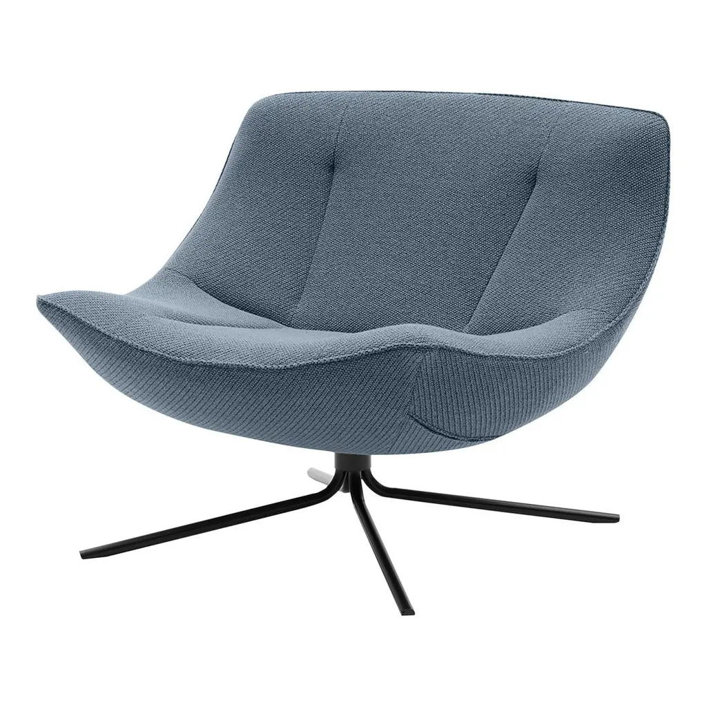 With a soft and round shape defined between four lines VERA is a welcoming and eye-catching lounge chair. The seat- and backrest is visually divided into six distinct areas that create a beautiful contrast to the round and organic surface that make up the outside of the chair. An elegant swivel base gives the chair a light expression in spite of the generous and comfortable size of the seat. Depending on the fabrics and chosen VERA can be used as a focal point in the interior decoration or more quietly blending in with other furniture.